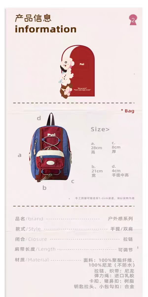 4楼Eubelle欧蓓 【卜冠今同款】puui原创生活双肩背包女 高级小众百搭户外旅游 活动价:218元