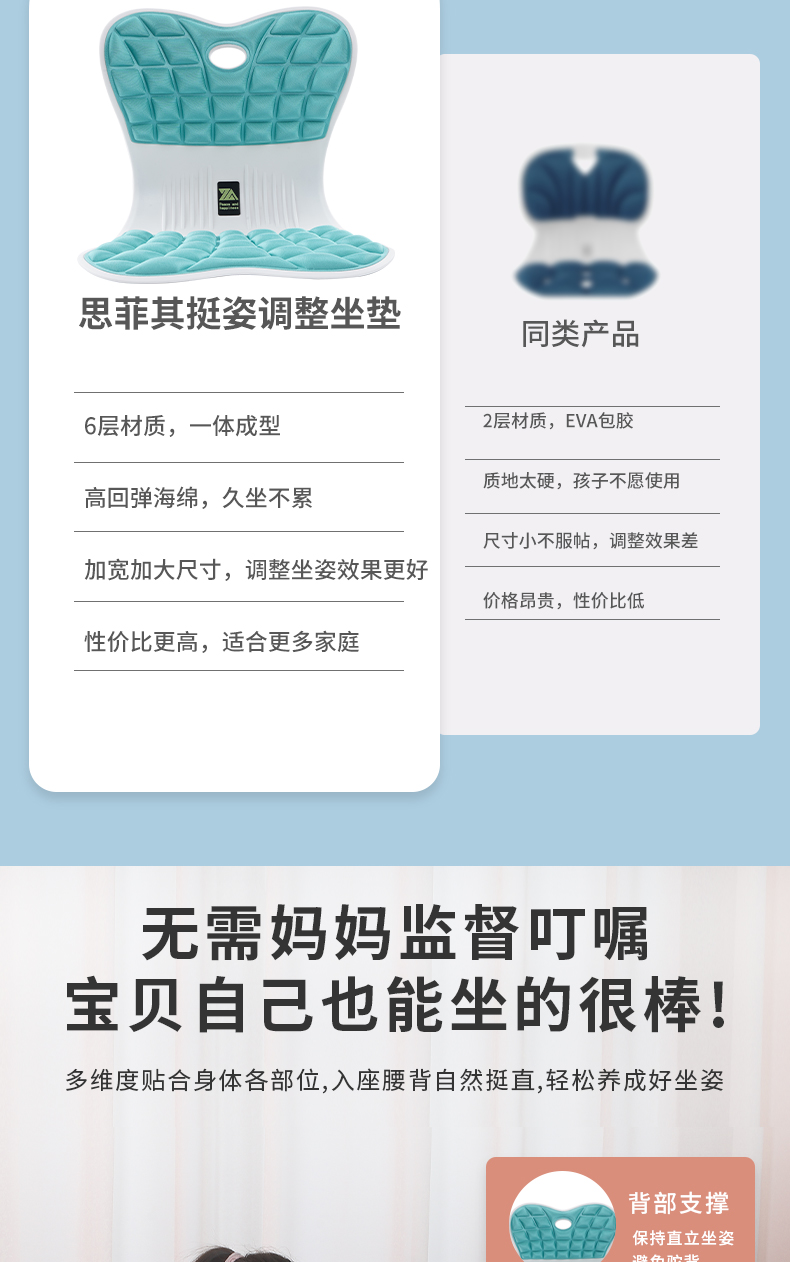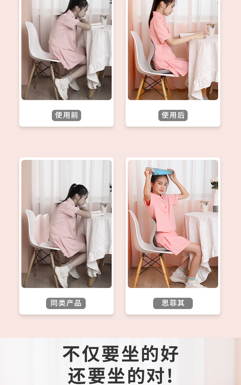 思菲其护腰矫姿坐垫S04 格子款花瓣坐垫矫正坐姿办公室护腰久坐神器学生预防驼背椅垫