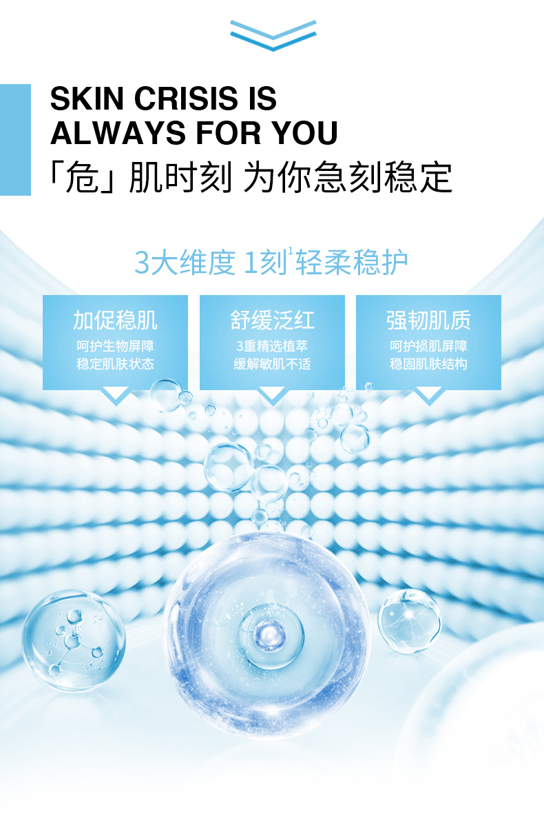 产品功效:稳定肌肤状态,舒缓泛红及敏感不适、强韧屏障,深度补水,锁水保湿,修护肌底