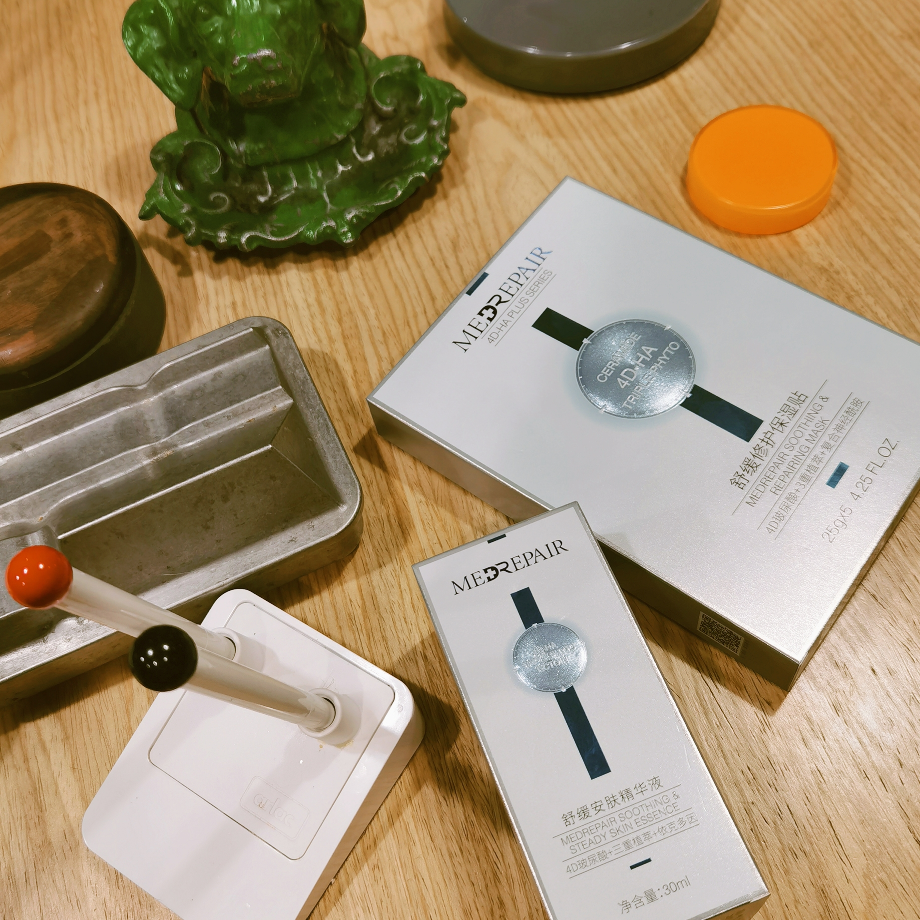啊啊啊,米蓓尔舒缓修复系列终于要齐了!之前有上过同系列的洁颜蜜、舒缓水和修护霜,今天要来补一下小蓝帽和降燥面膜!当红炸子鸡小蓝帽精华,8大专利加持,稳肌舒缓,开挂“灭火”,改善泛红;降燥平价面膜,应该算是店里坠便宜的了,用起来不心疼,超适合夏天降燥!敏感肌可以全套搞起来啦!