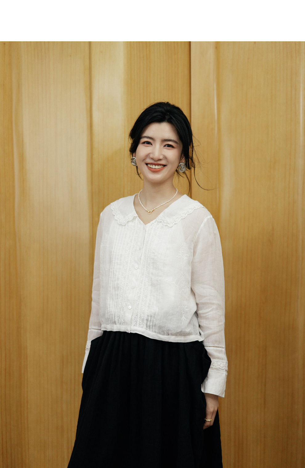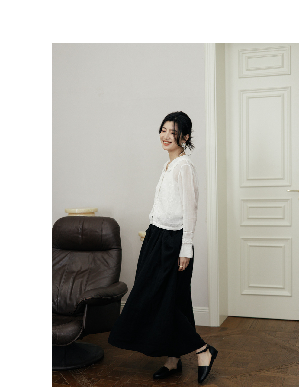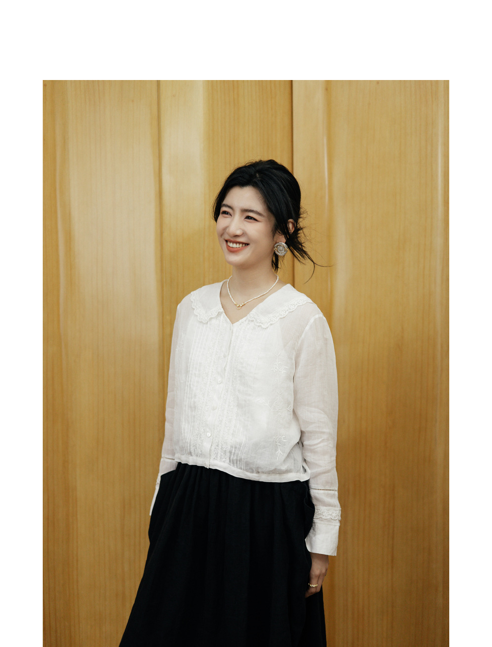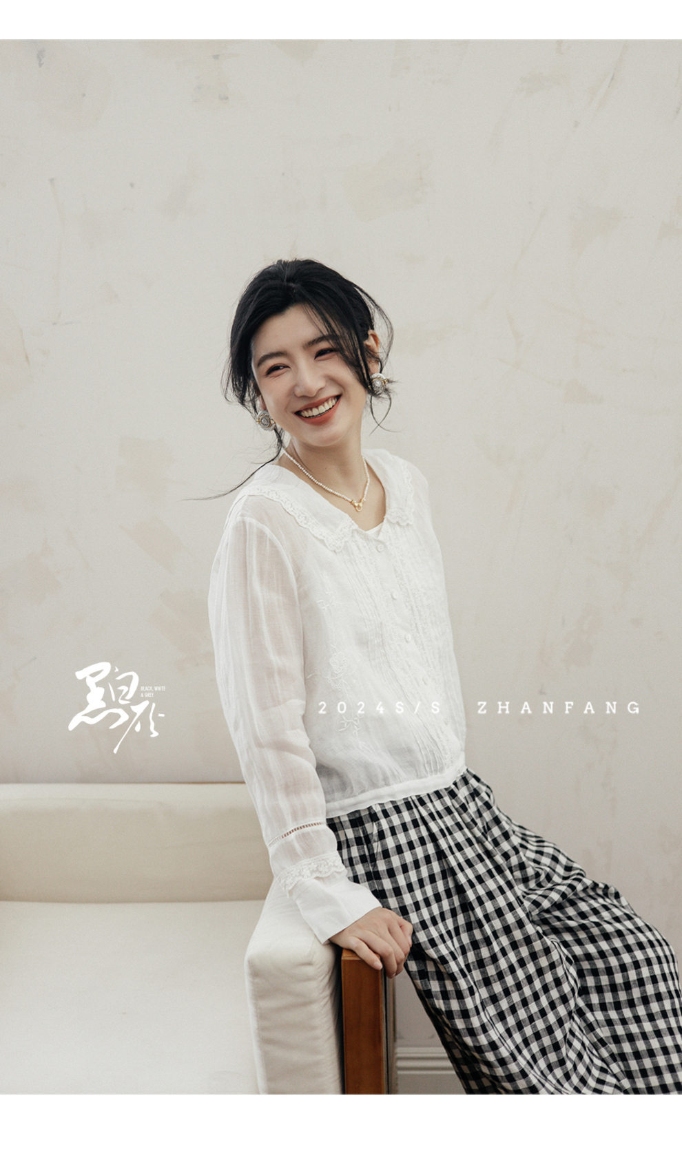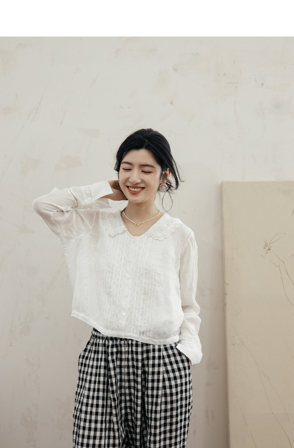 绽放旅行女装502【黑白灰系列】古典法式花边刺绣方领长袖衬衫