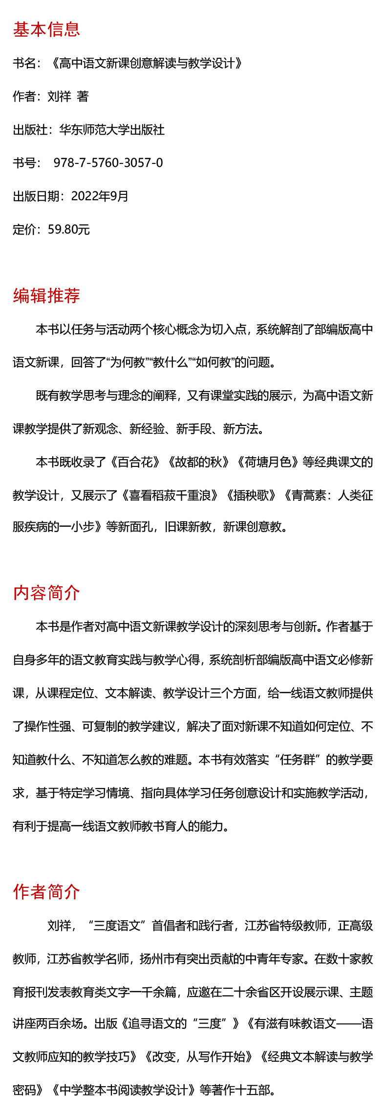 高中语文新课创意解读与教学设计 大夏书系 语文之道 刘祥 系统剖析部编版新课