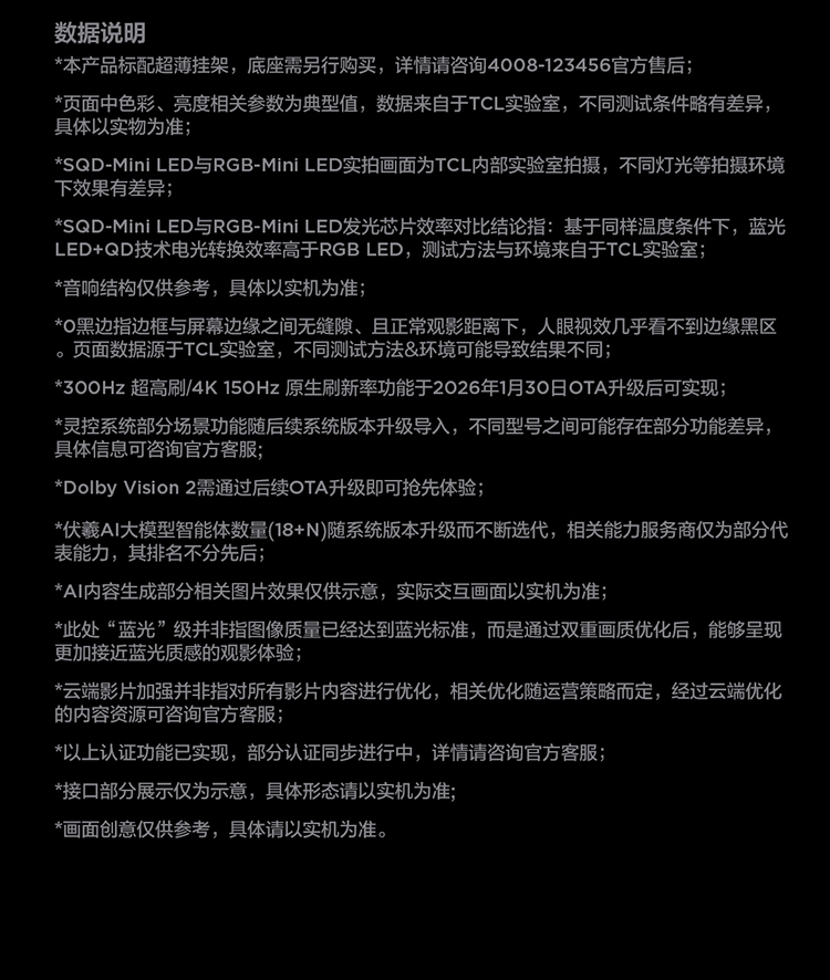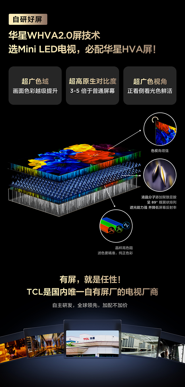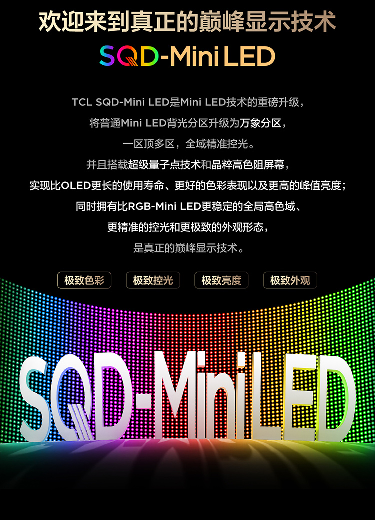 TCL电视 85Q10M 85英寸 SQD-Mini LED 100%全局高色域 超级蝶翼华曜屏 万象分区 绚彩XDR 6000nits