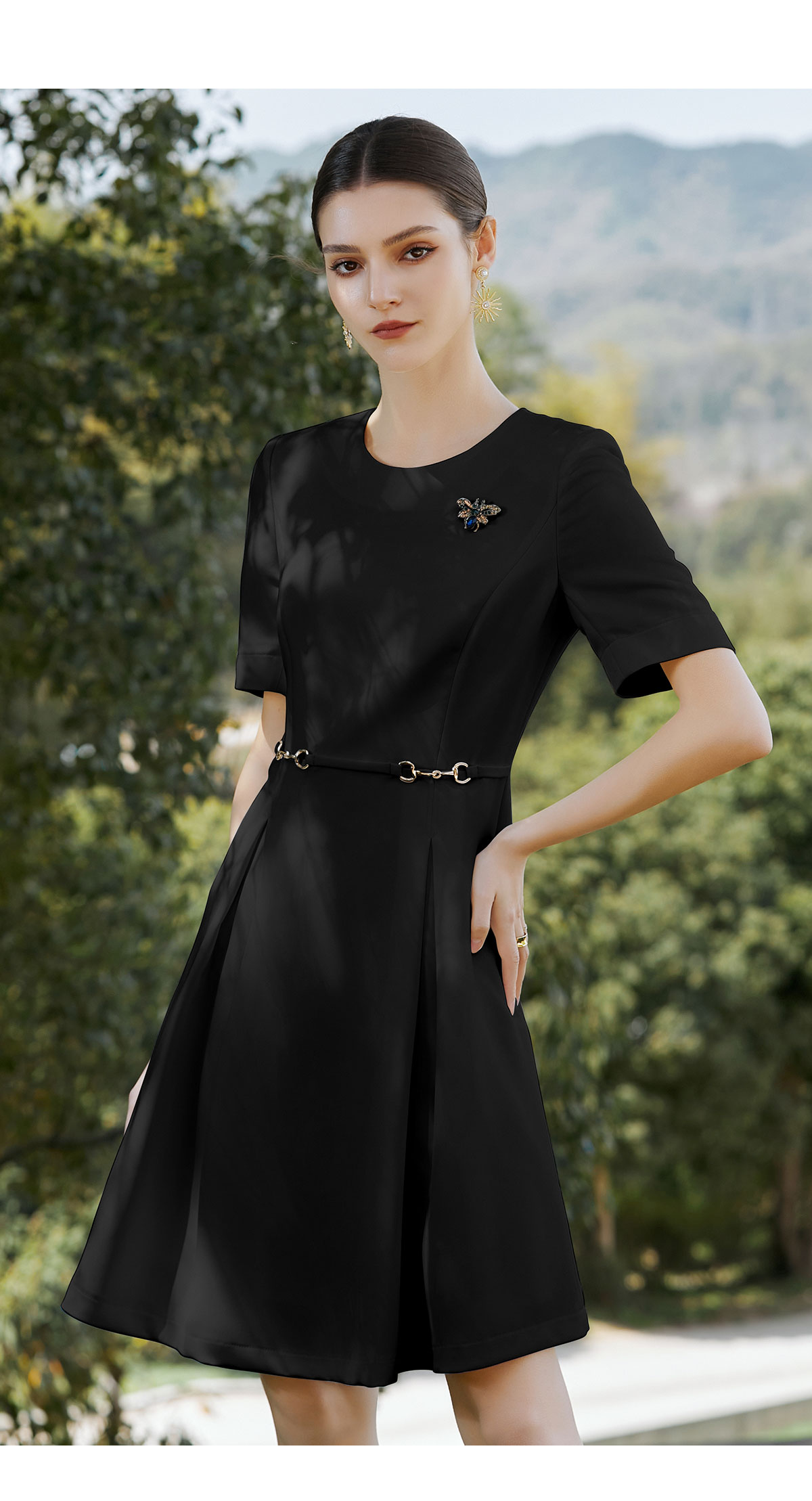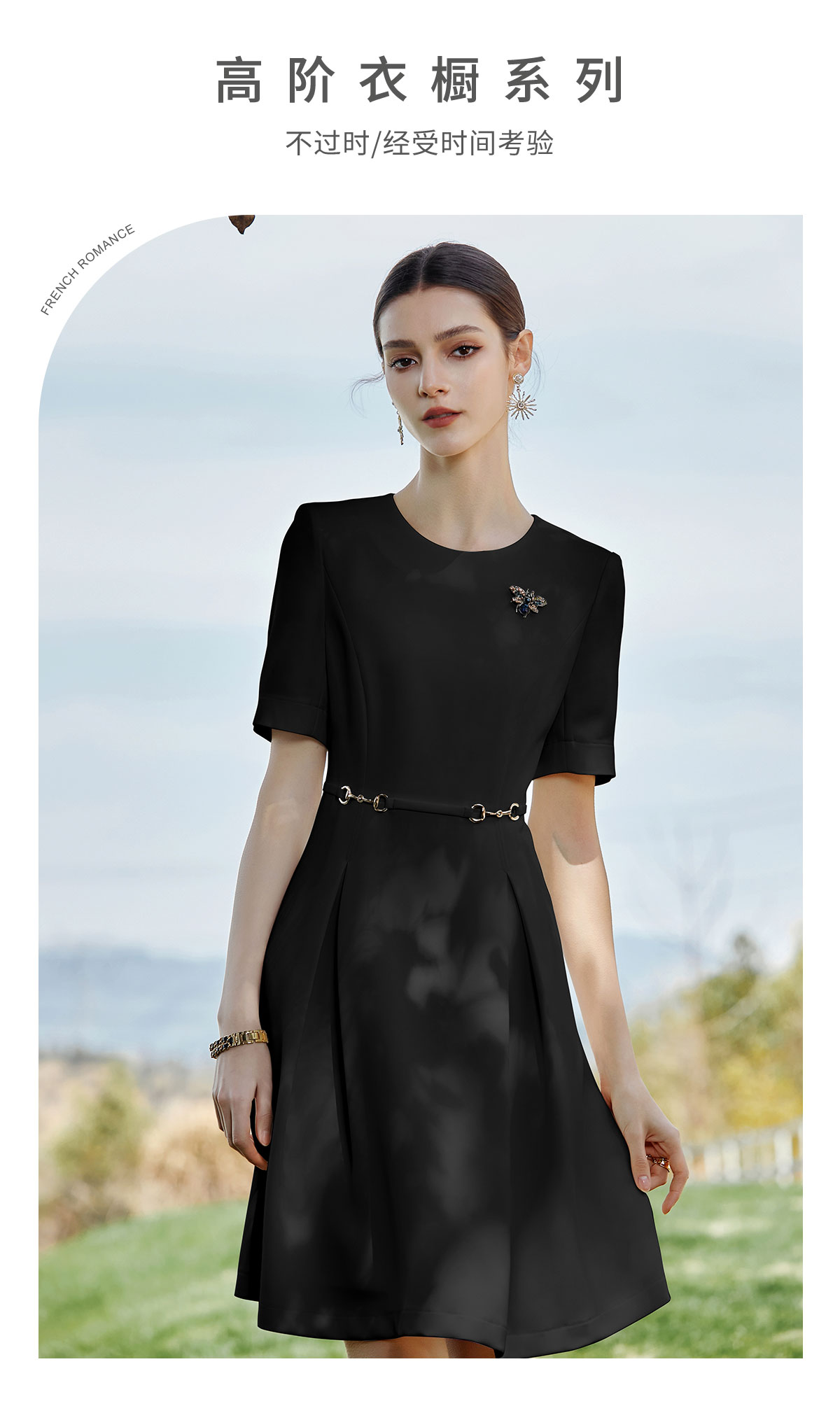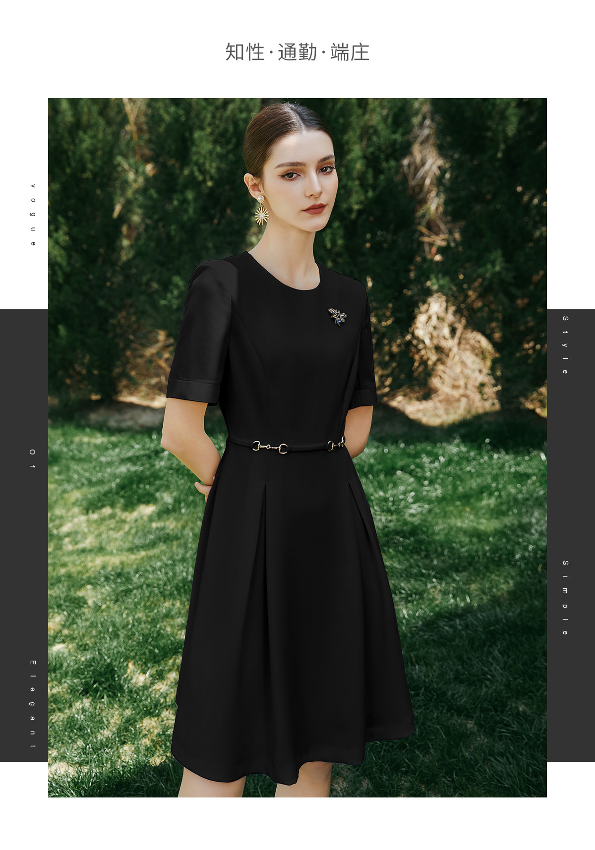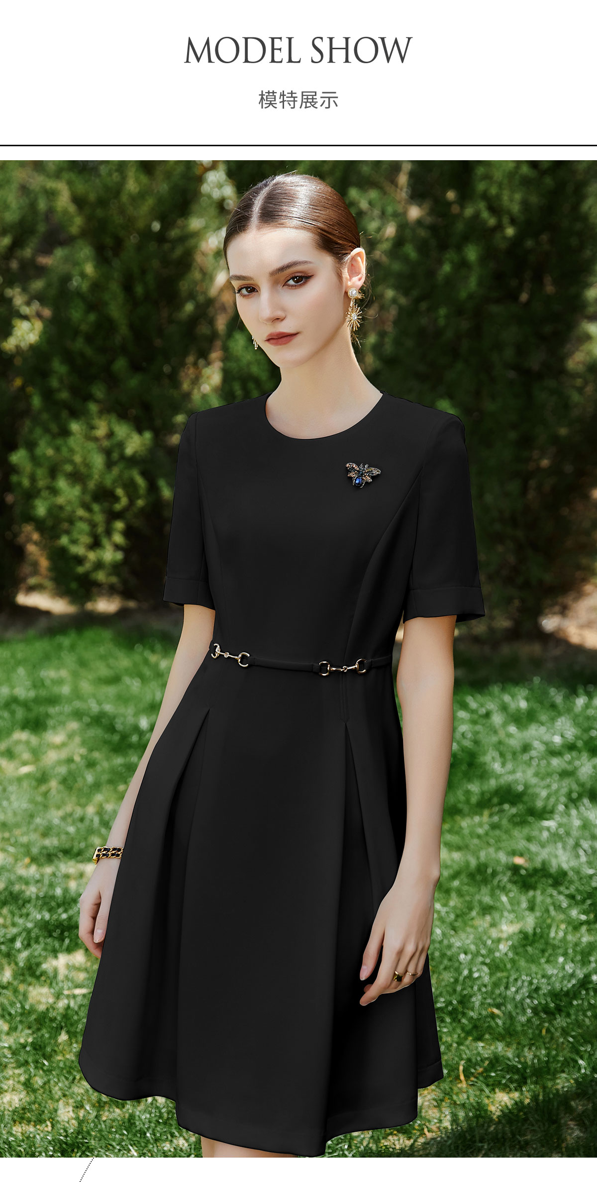 AD职场通勤连衣裙女士职业装黑色圆领西装裙收腰显瘦正装工作服夏