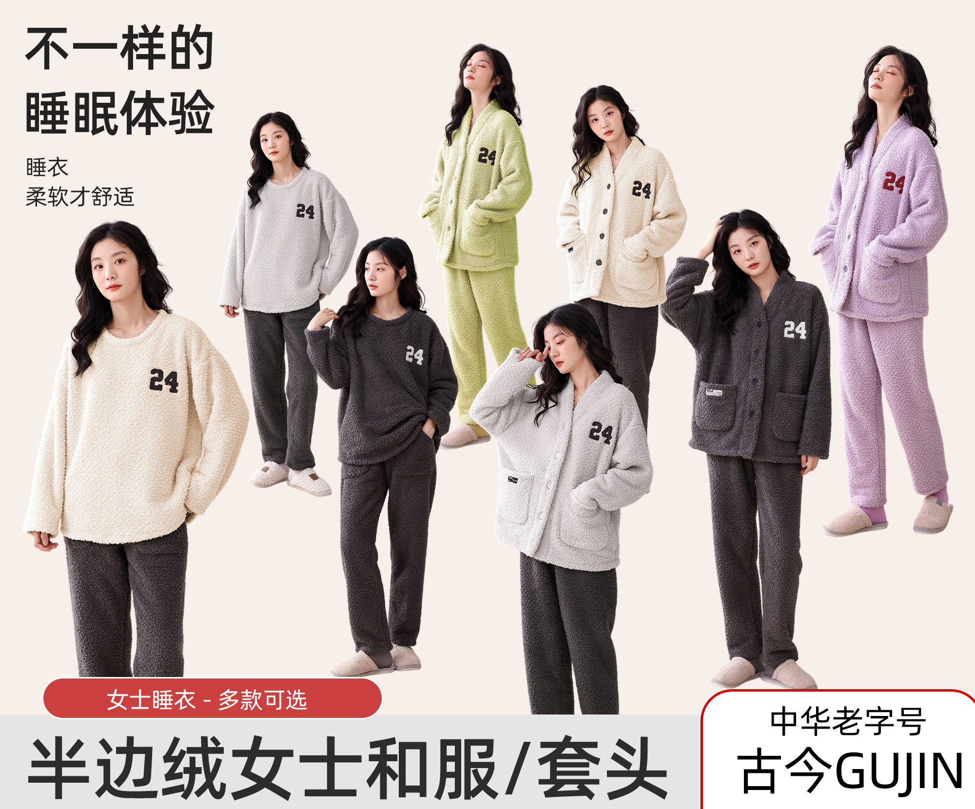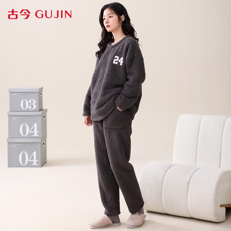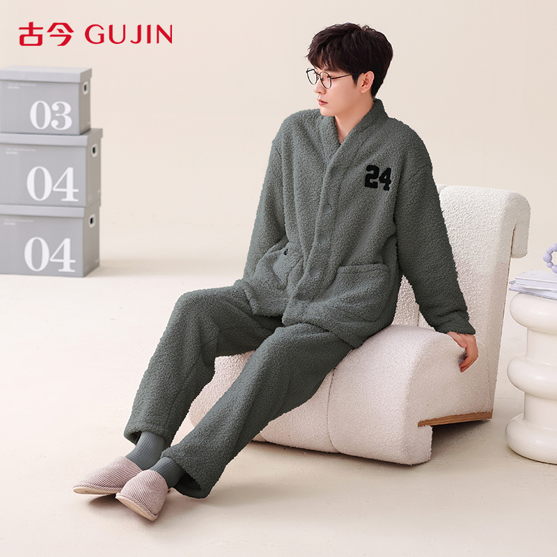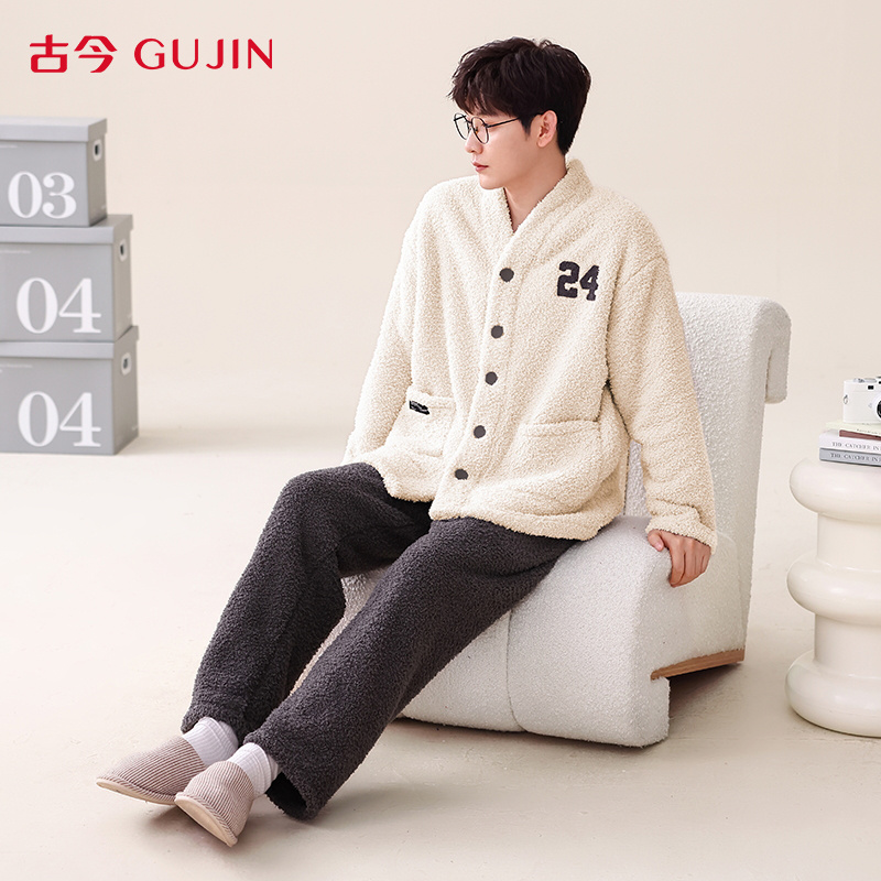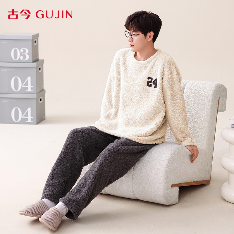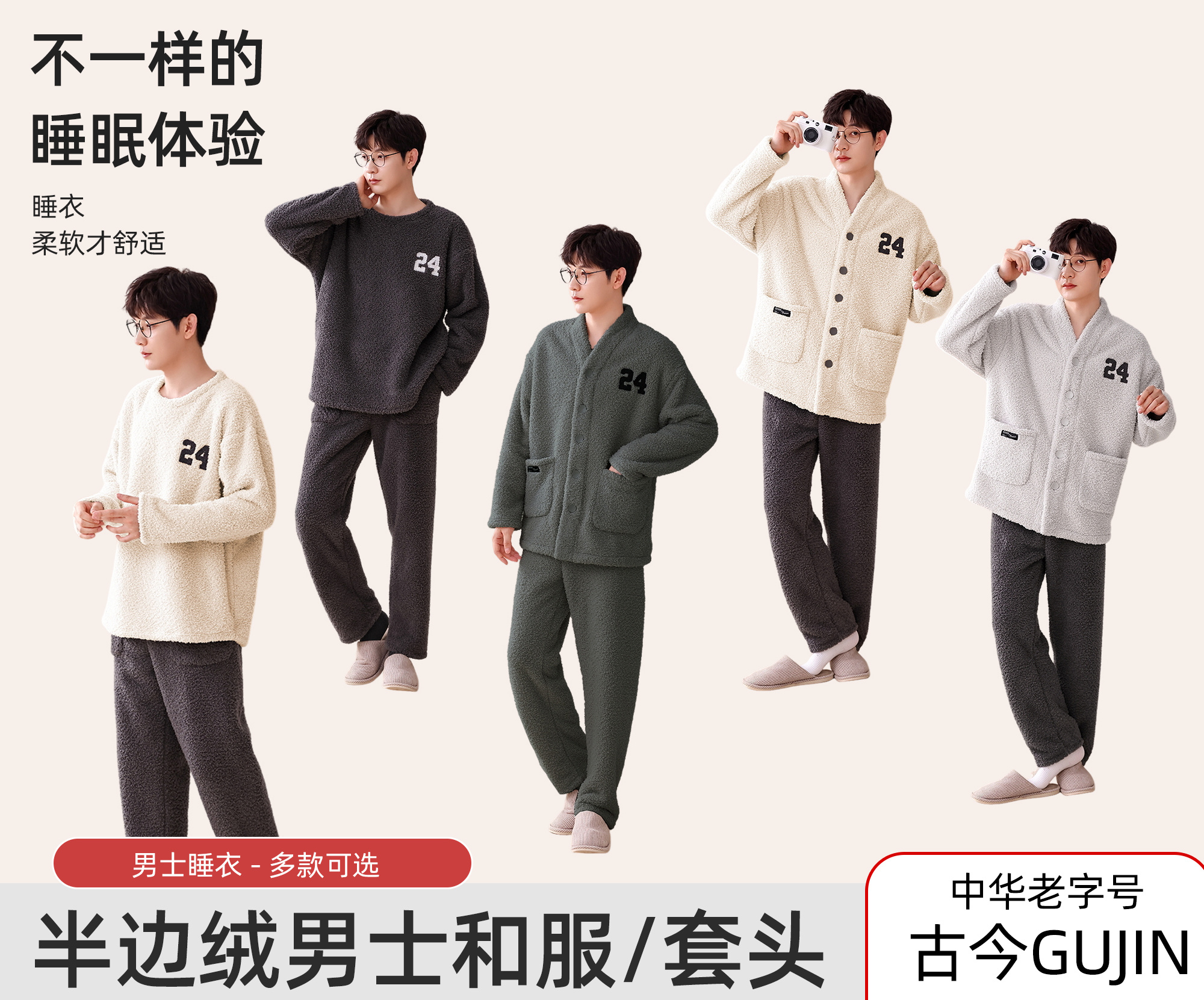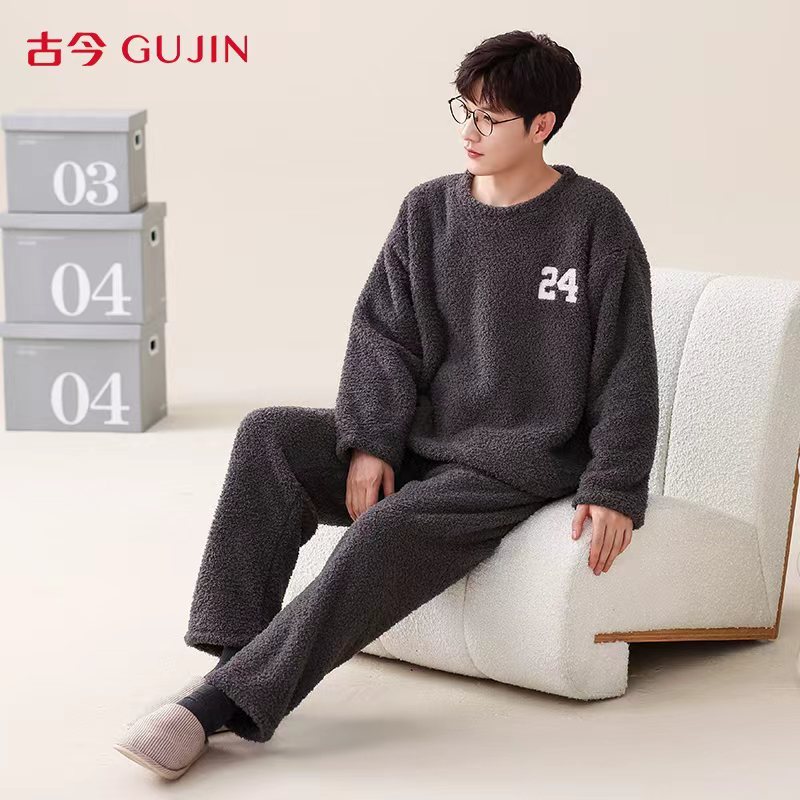 【古今GUJIN半边绒情侣家居服套装】加密加厚款5°可穿,860g进口级双面暖绒面料保暖性是羊毛的2倍,棉的4倍!一面暖绒,一面柔肤的黑科技