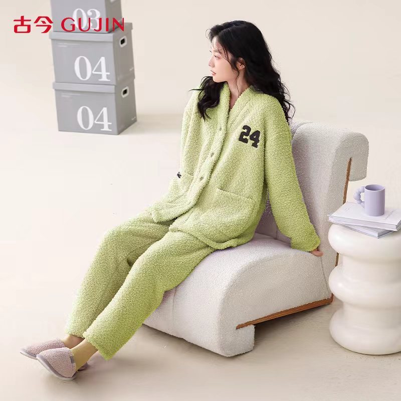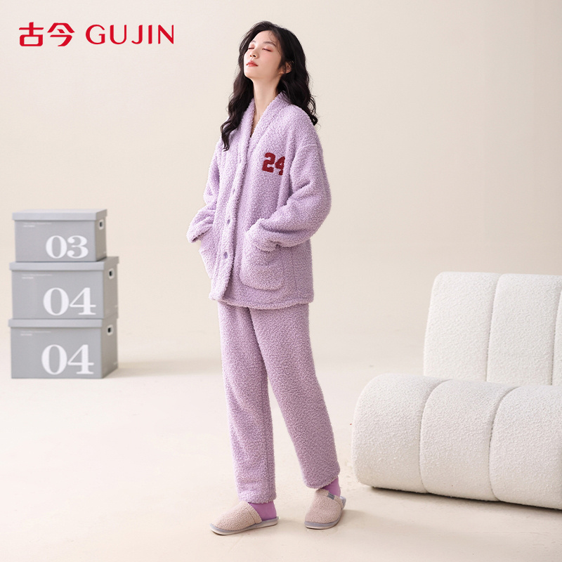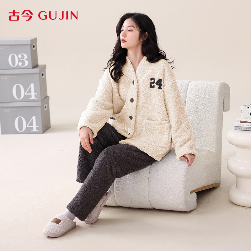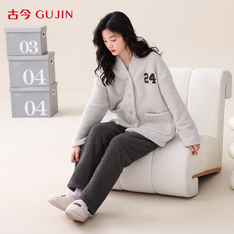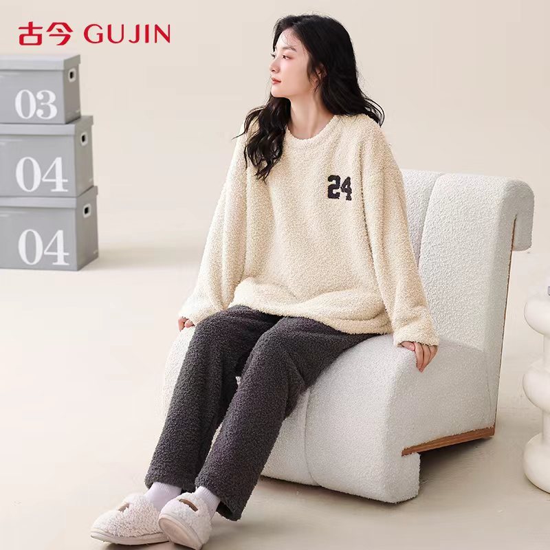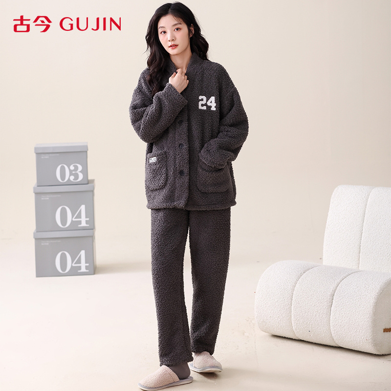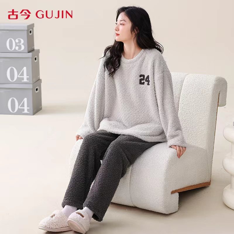 【古今GUJIN半边绒情侣家居服套装】加密加厚款5°可穿,860g进口级双面暖绒面料保暖性是羊毛的2倍,棉的4倍!一面暖绒,一面柔肤的黑科技