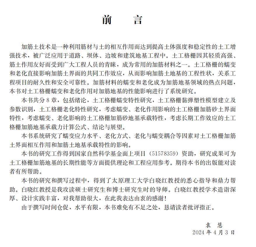 土工格栅蠕变、老化作用对加筋地基性能影响的研究/ 袁慧著:中国建材工业出版社, 2024 ISBN 9787516042052
