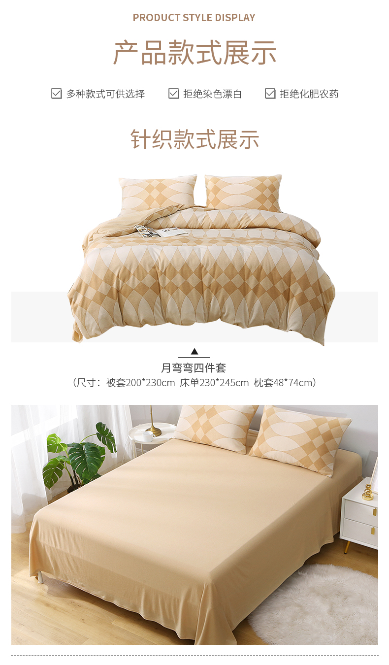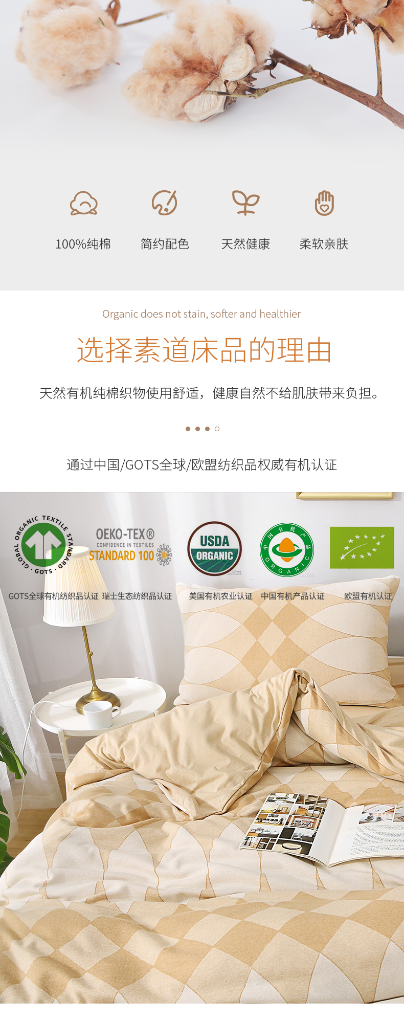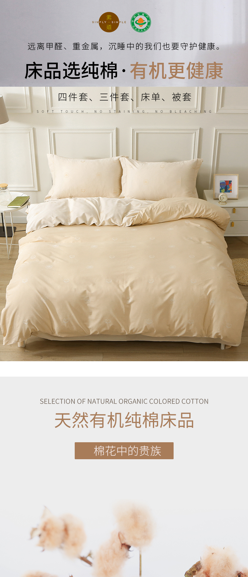 素道床上四件套1.8m 1.5m纯棉 彩棉有机种植 全棉床单被套双人床上用品 单人床四件套