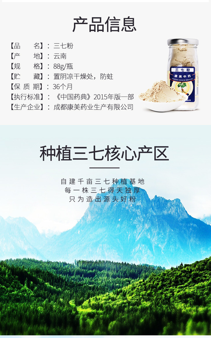 康美药业三七粉88g/瓶 云南文山优质三七粉/田七粉粉质细腻可搭配丹参粉西洋参粉冲服煲汤