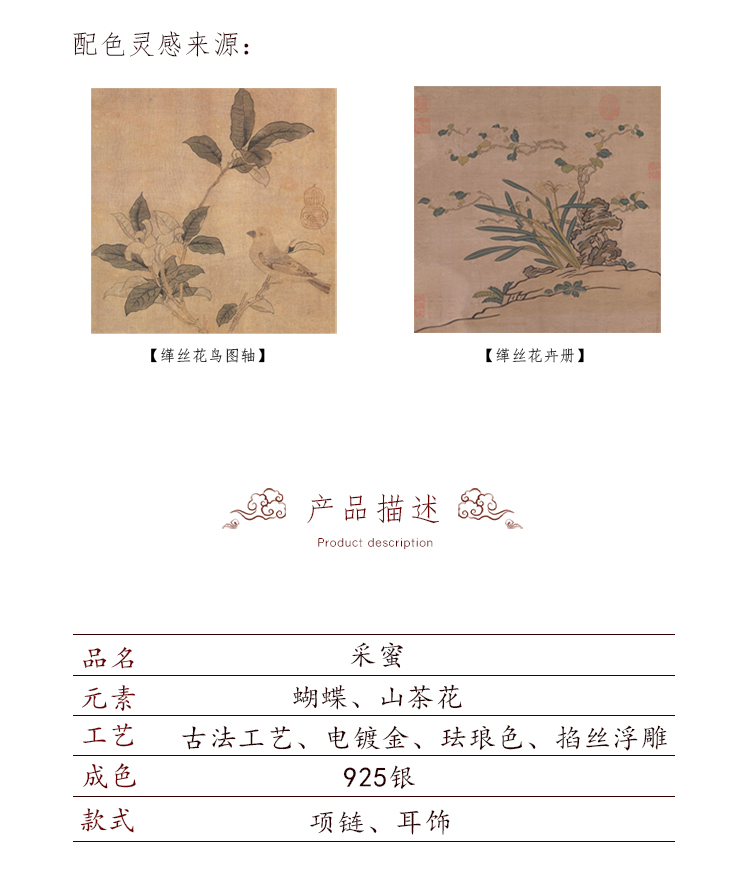 【宫里项链 耳饰】采蜜系列掐丝浮雕项链 耳饰