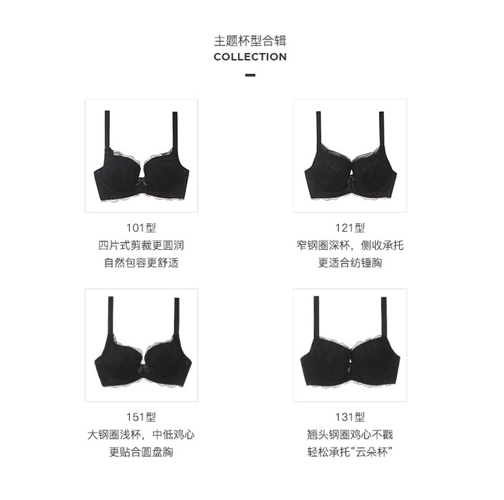 告白黑 蕾丝款小清新大罩杯内衣 101/121/131/151型 奶糖派Candy La VIE