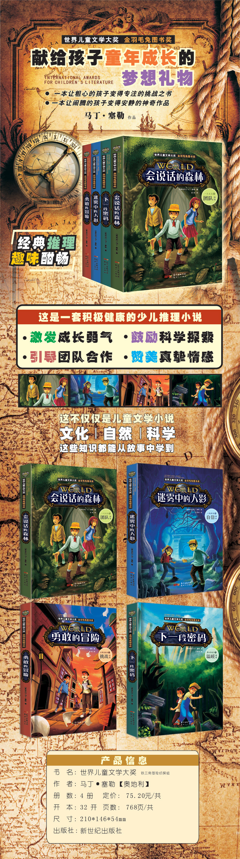 世界儿童文学大奖图书金羽毛兔图书奖全套4册会说话的森林下一段密码勇敢的冒险 小学生3-6年级读物三四五六年级男孩冒险书 正版