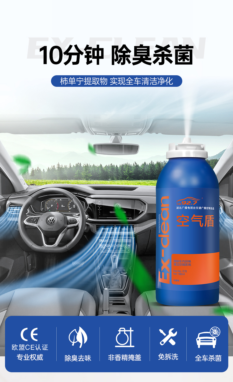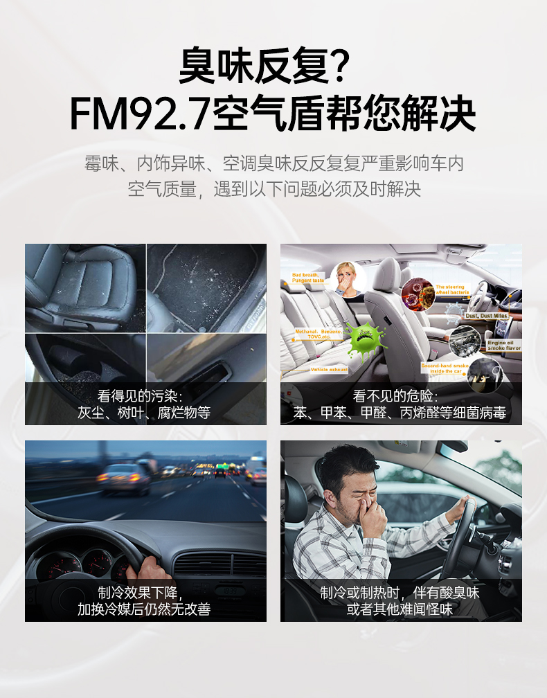FM92.7空气盾 清除车内异味 清洁空调系统 除味、杀菌、抑菌三效合一 植物提取 孕婴可用 空气清新剂 车居两用 交通广播定制出品