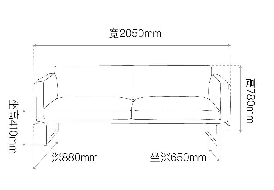 尺寸:宽2050*深880*高780mm*坐高410mm*坐深650mm