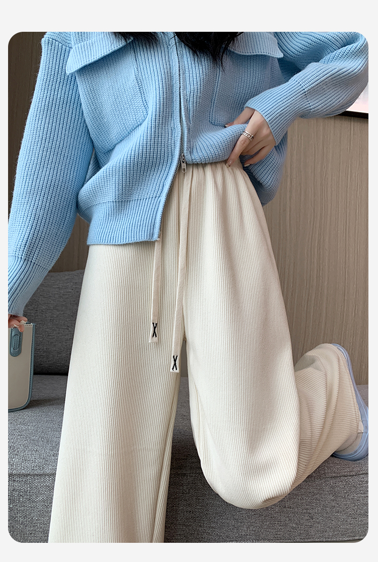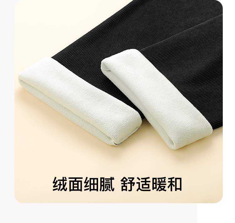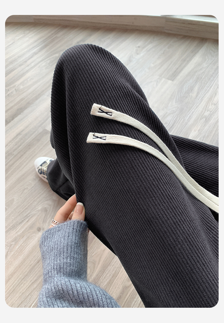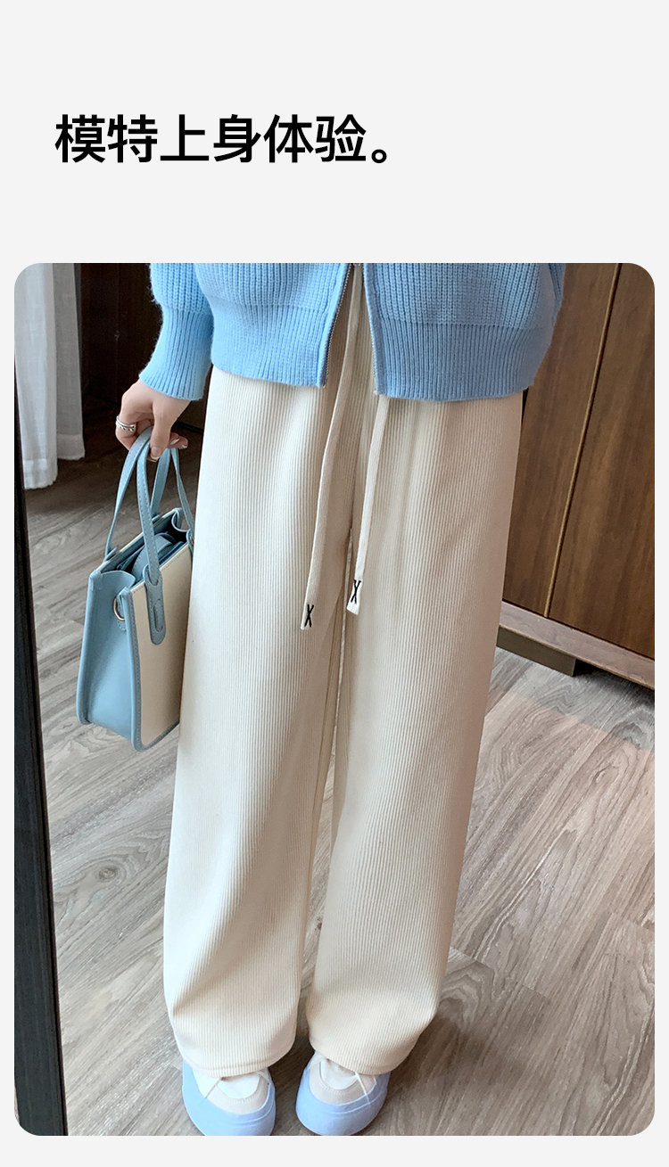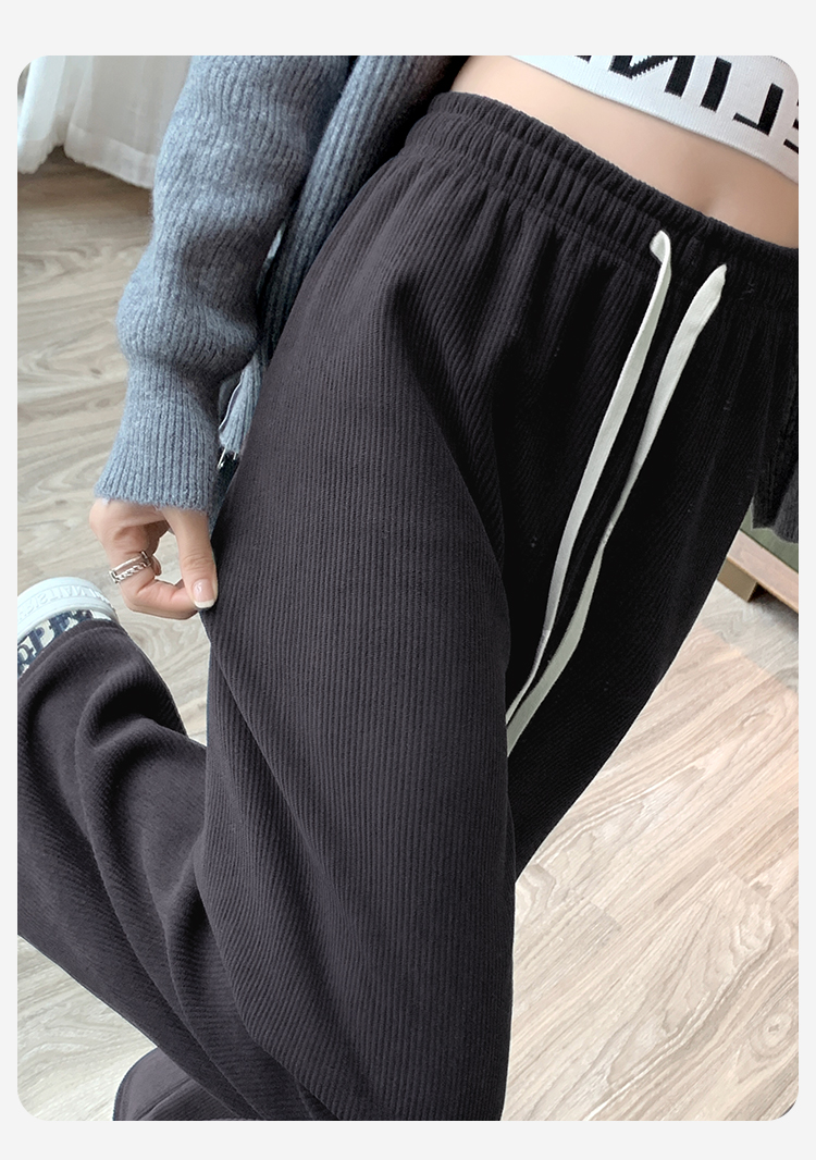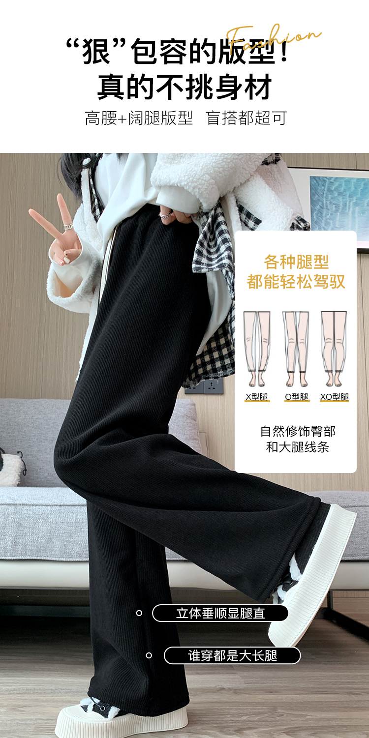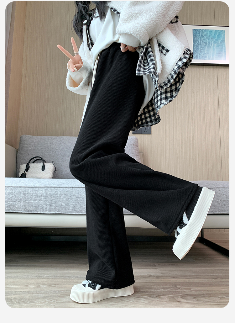 秋冬加绒阔腿裤女加厚保暖仿羊羔绒百搭直筒显瘦休闲裤长裤女加绒条纹裤