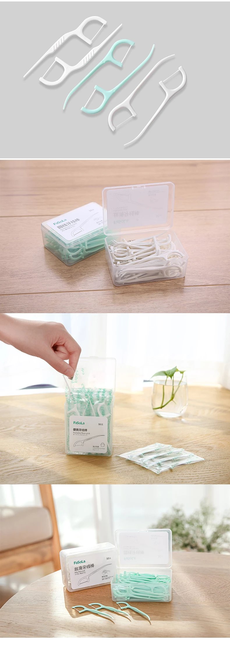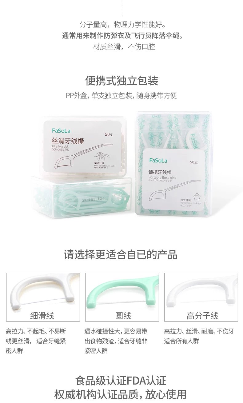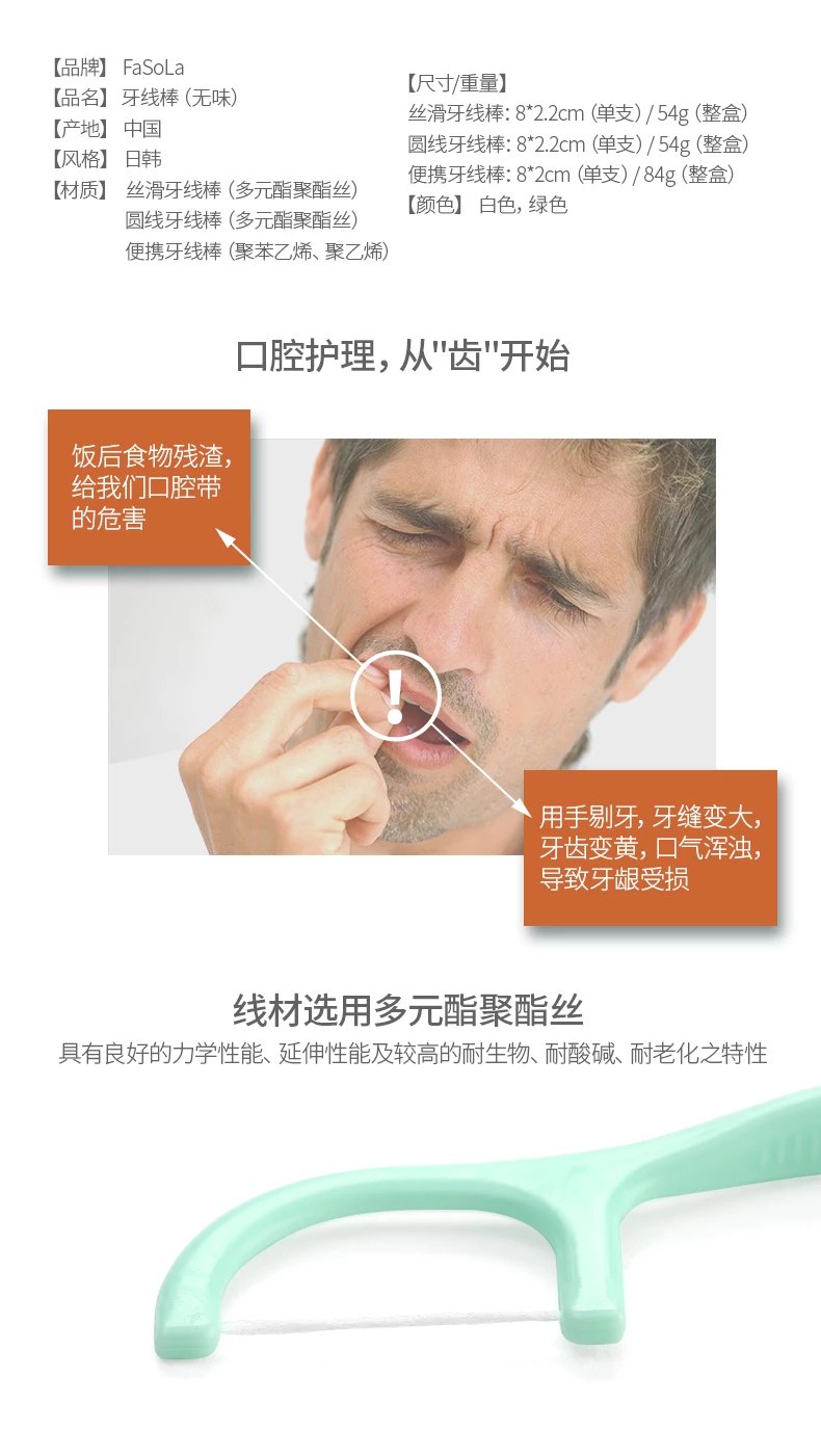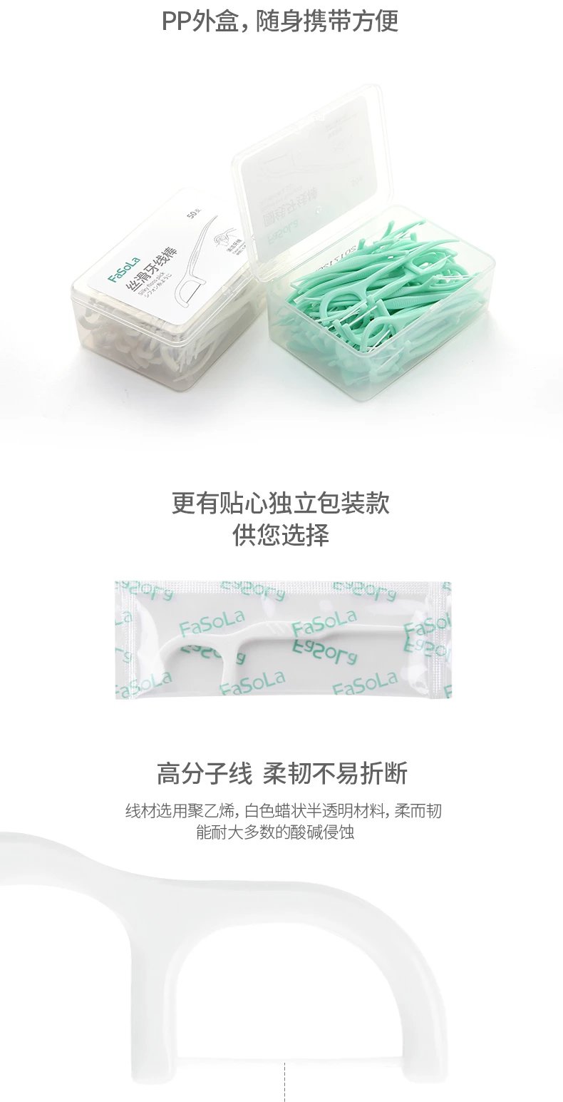 FaSoLa圆线丝滑牙线棒经典超细牙线剔牙线家庭装安全牙线棒牙签50支