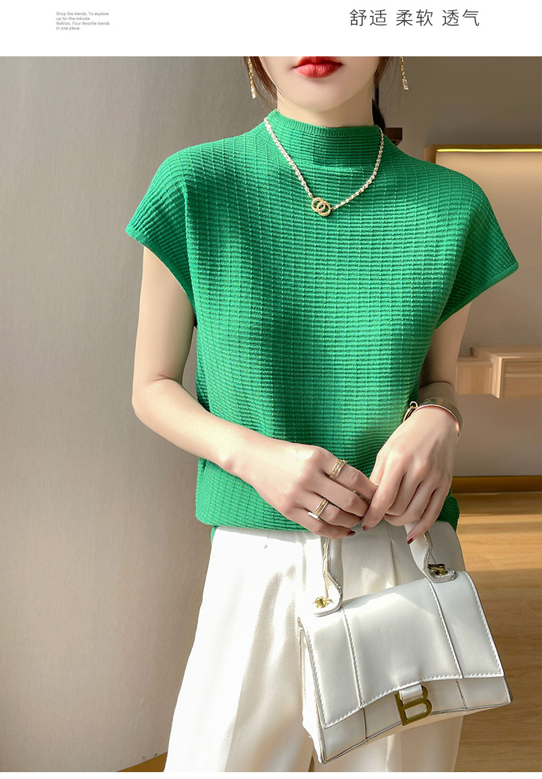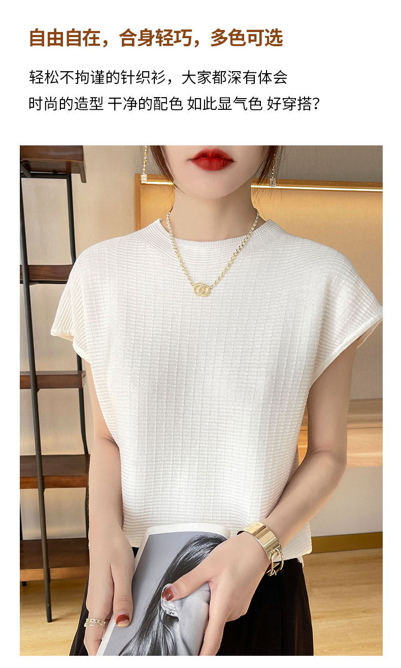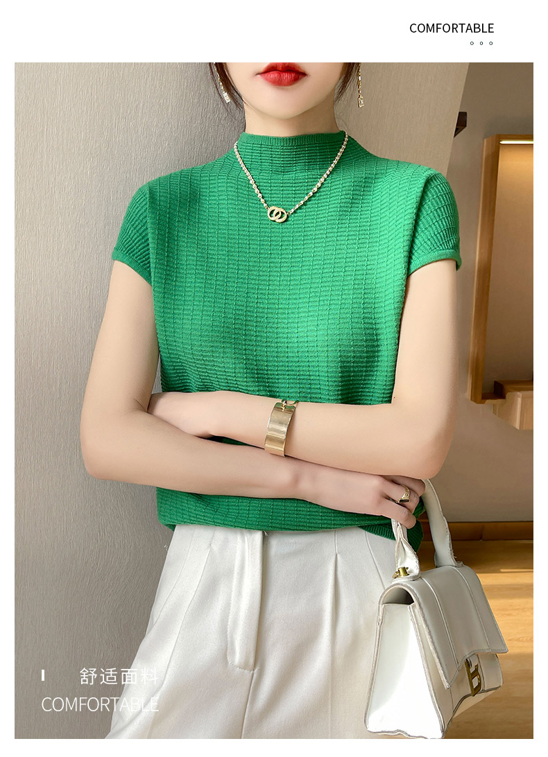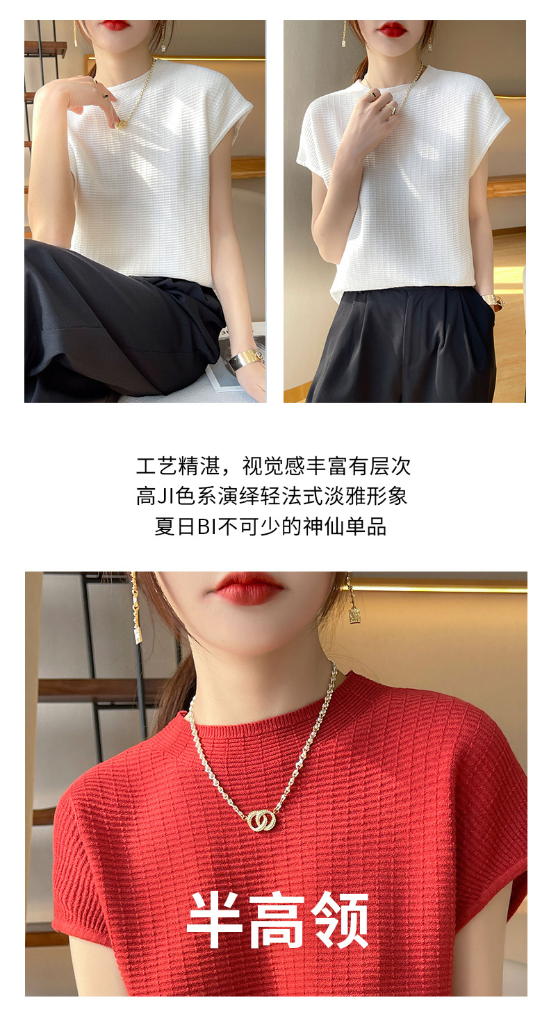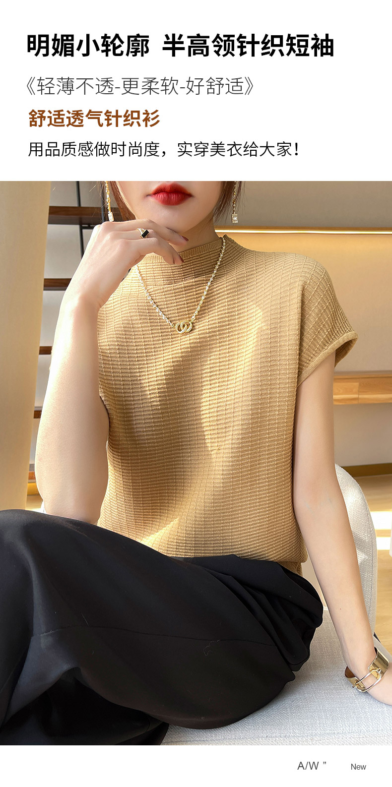 【59元抢】半高领针织T恤,亲肤舒适复古百搭,2022春夏新款短袖针织底短袖T恤,10色可选
