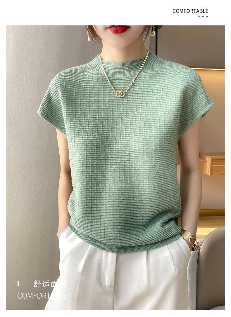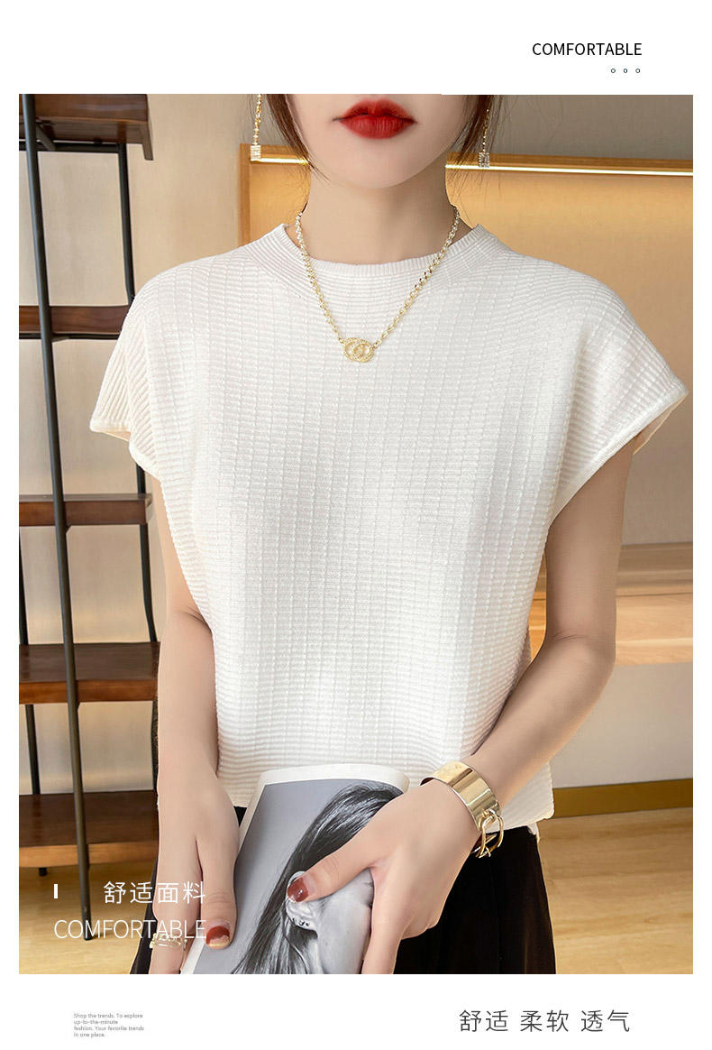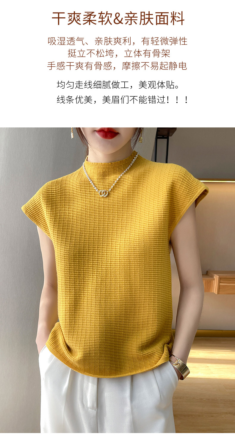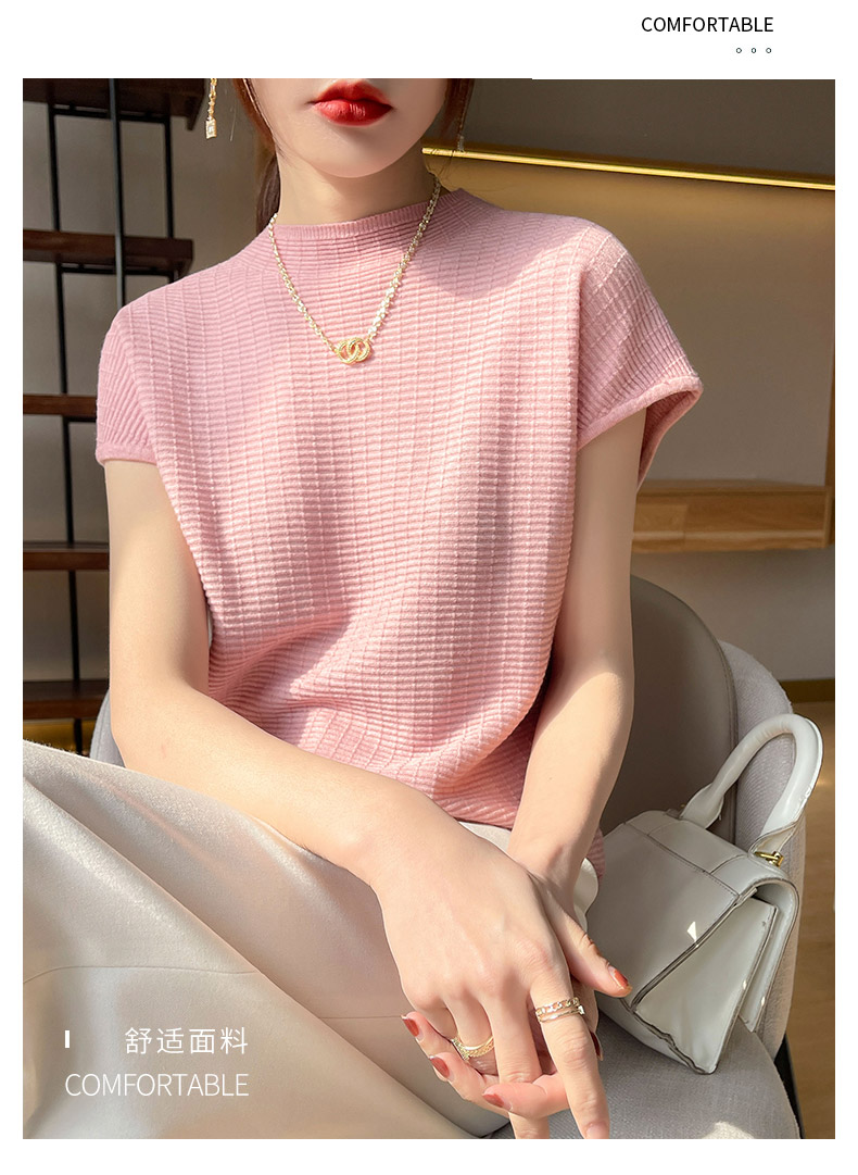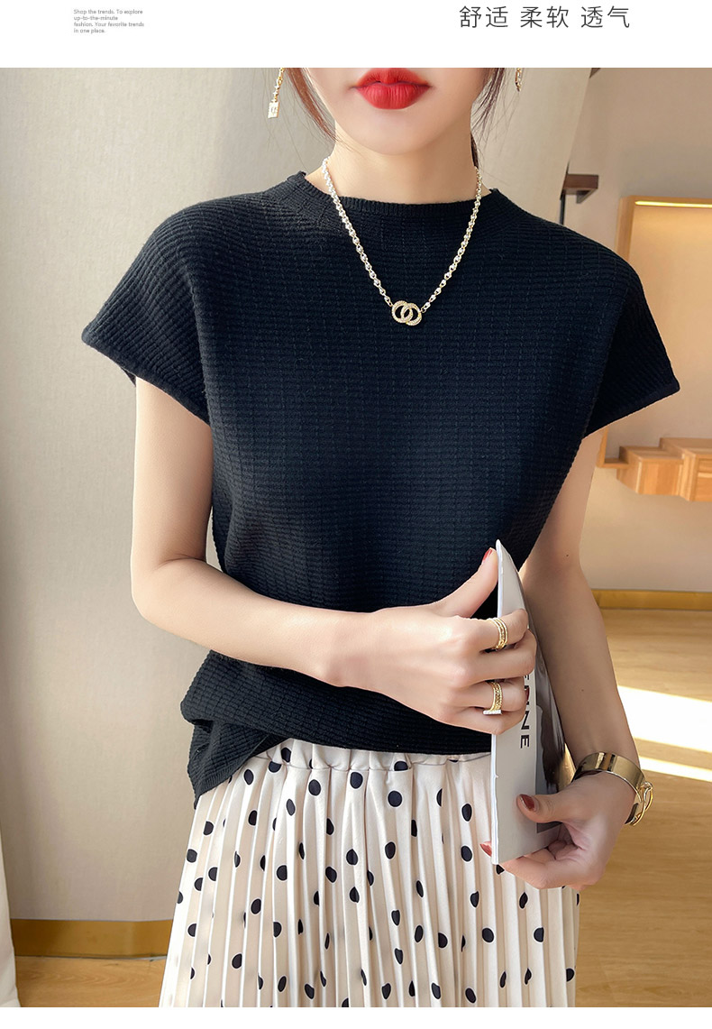 【59元抢】半高领针织T恤,亲肤舒适复古百搭,2022春夏新款短袖针织底短袖T恤,10色可选