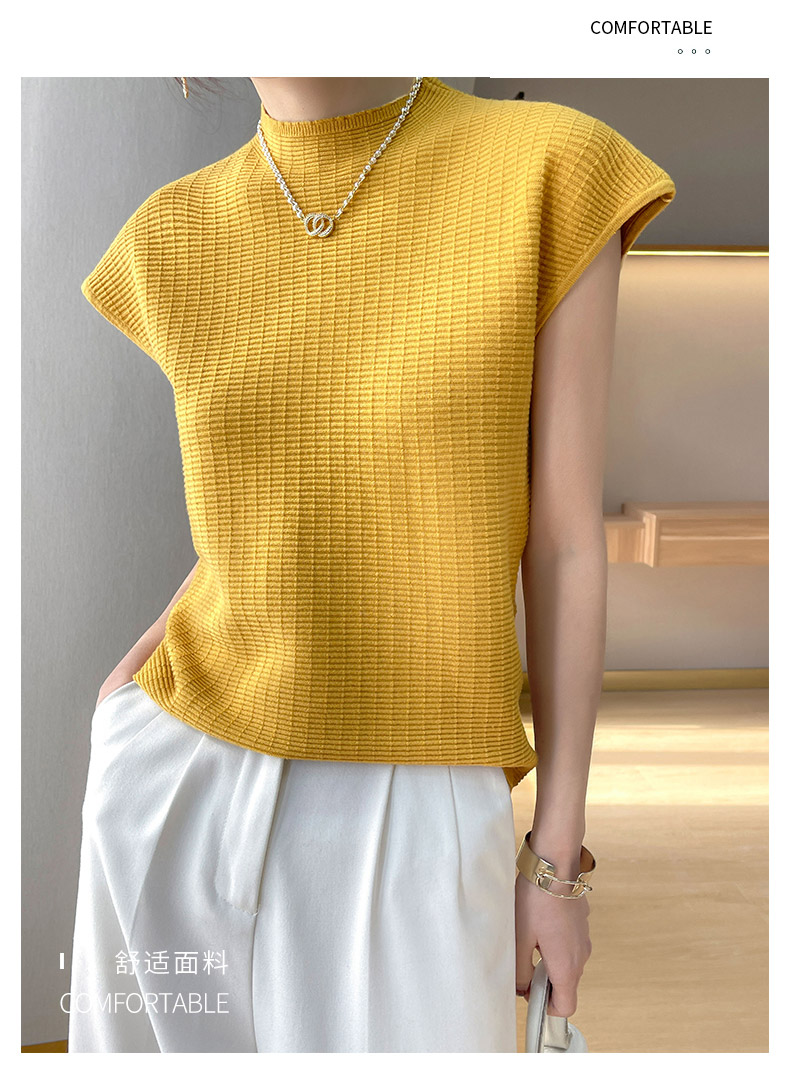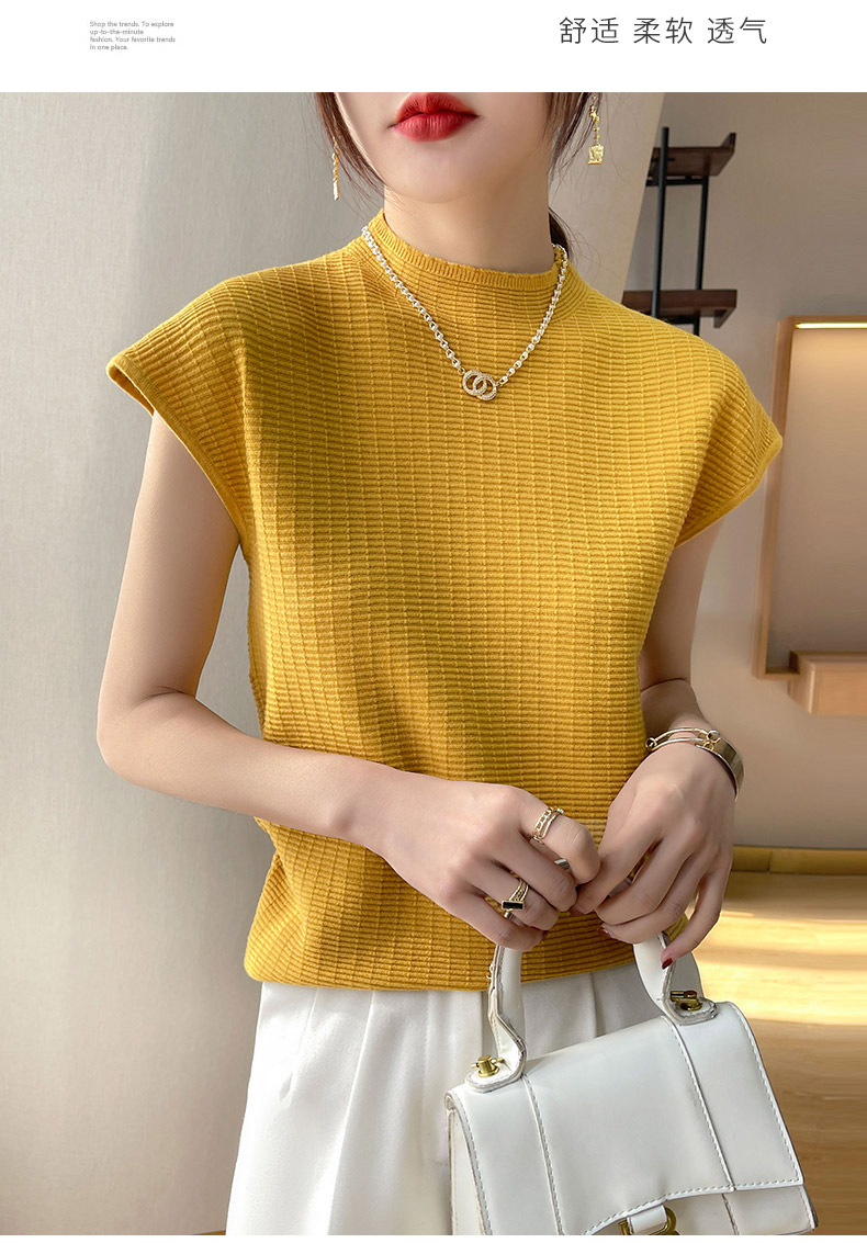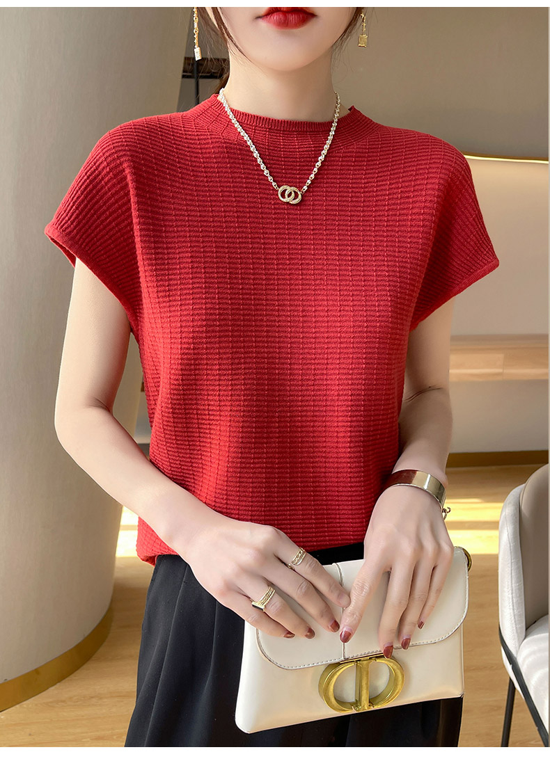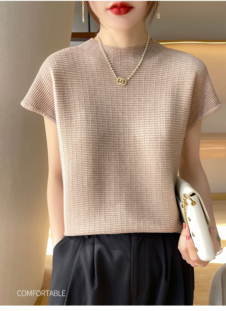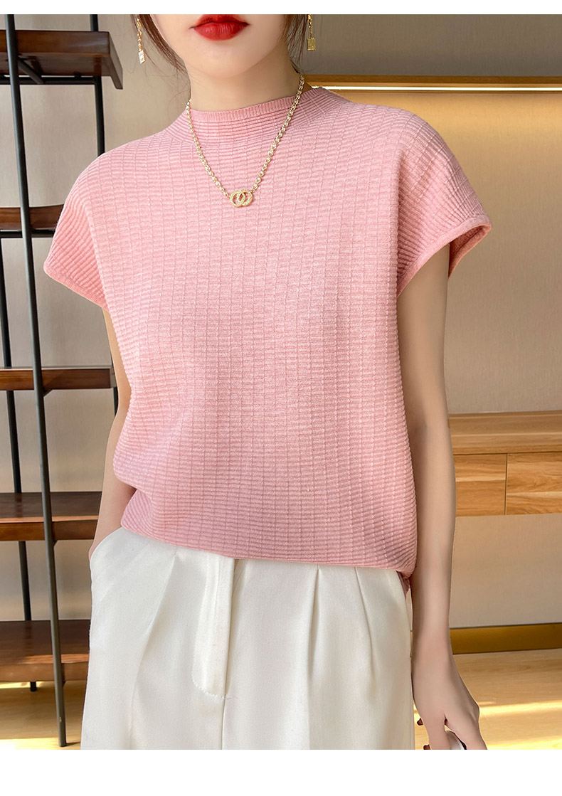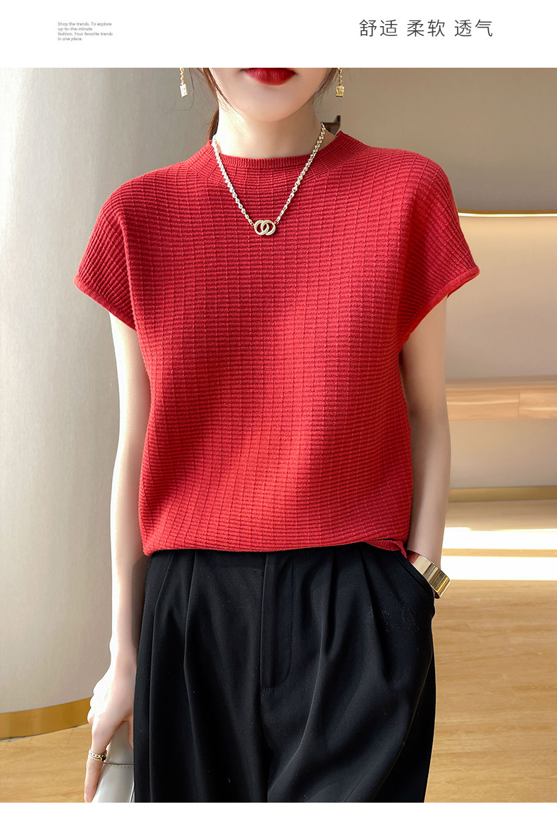 【59元抢】半高领针织T恤,亲肤舒适复古百搭,2022春夏新款短袖针织底短袖T恤,10色可选