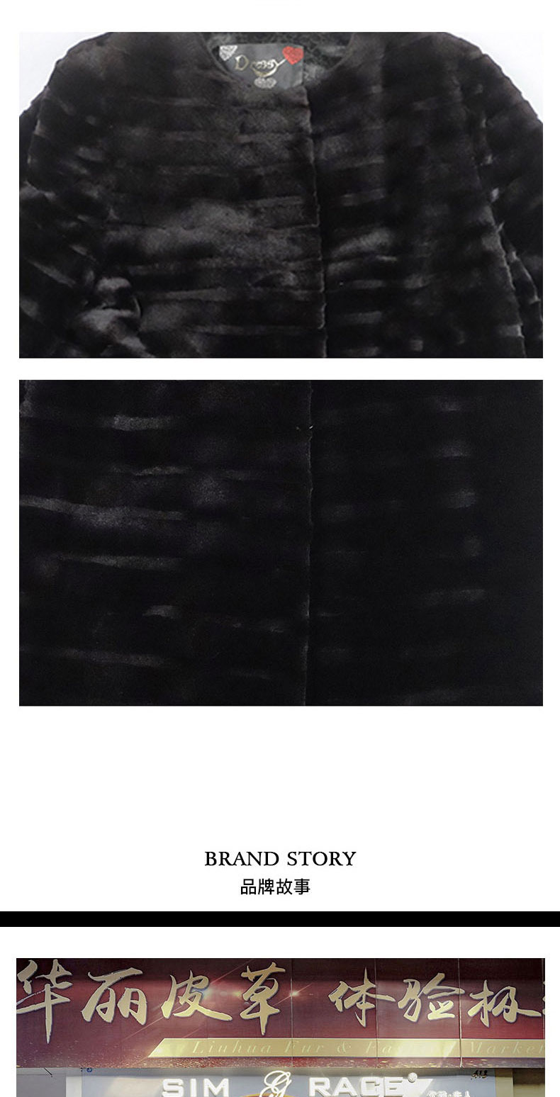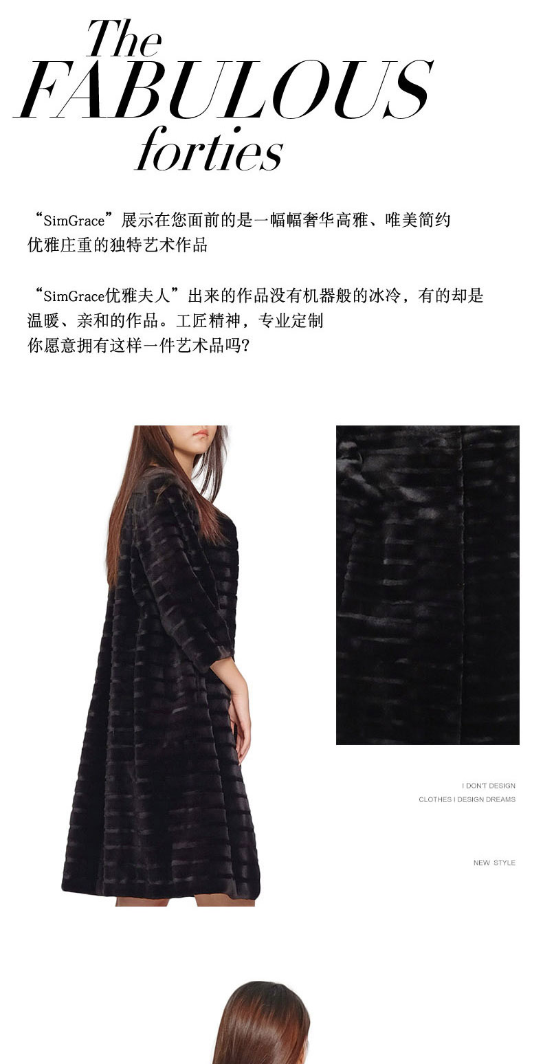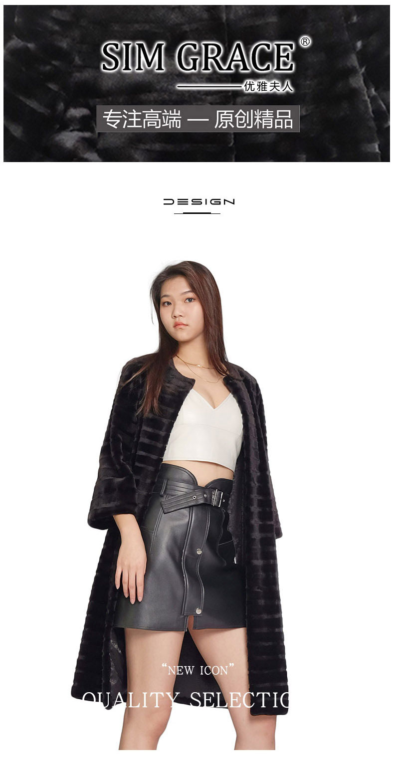 SIM GRACE 优雅夫人 女士经典的剪毛水貂间超剪水貂设计时尚圆领水貂中长款黑色冬季外套