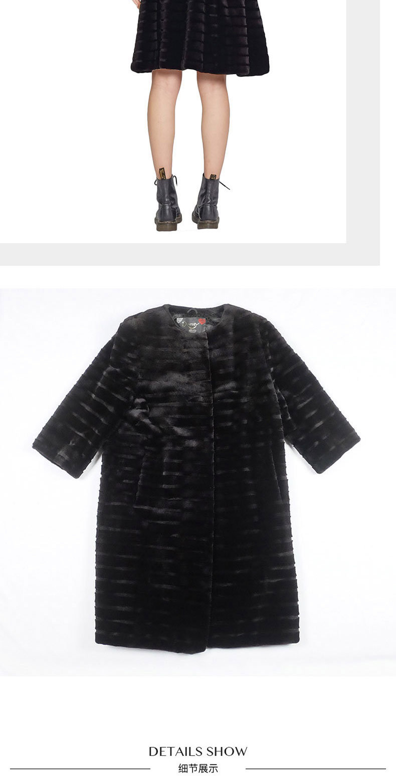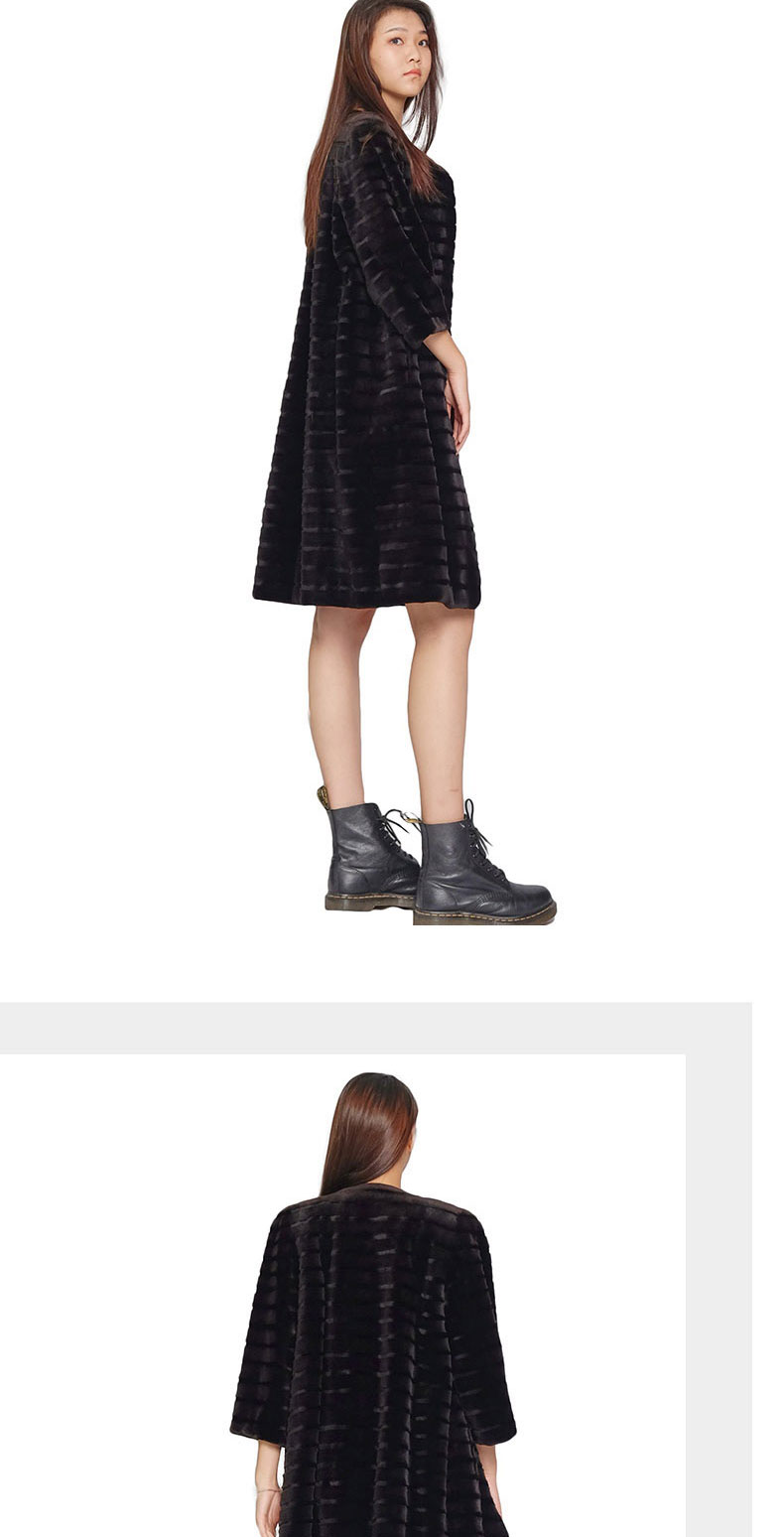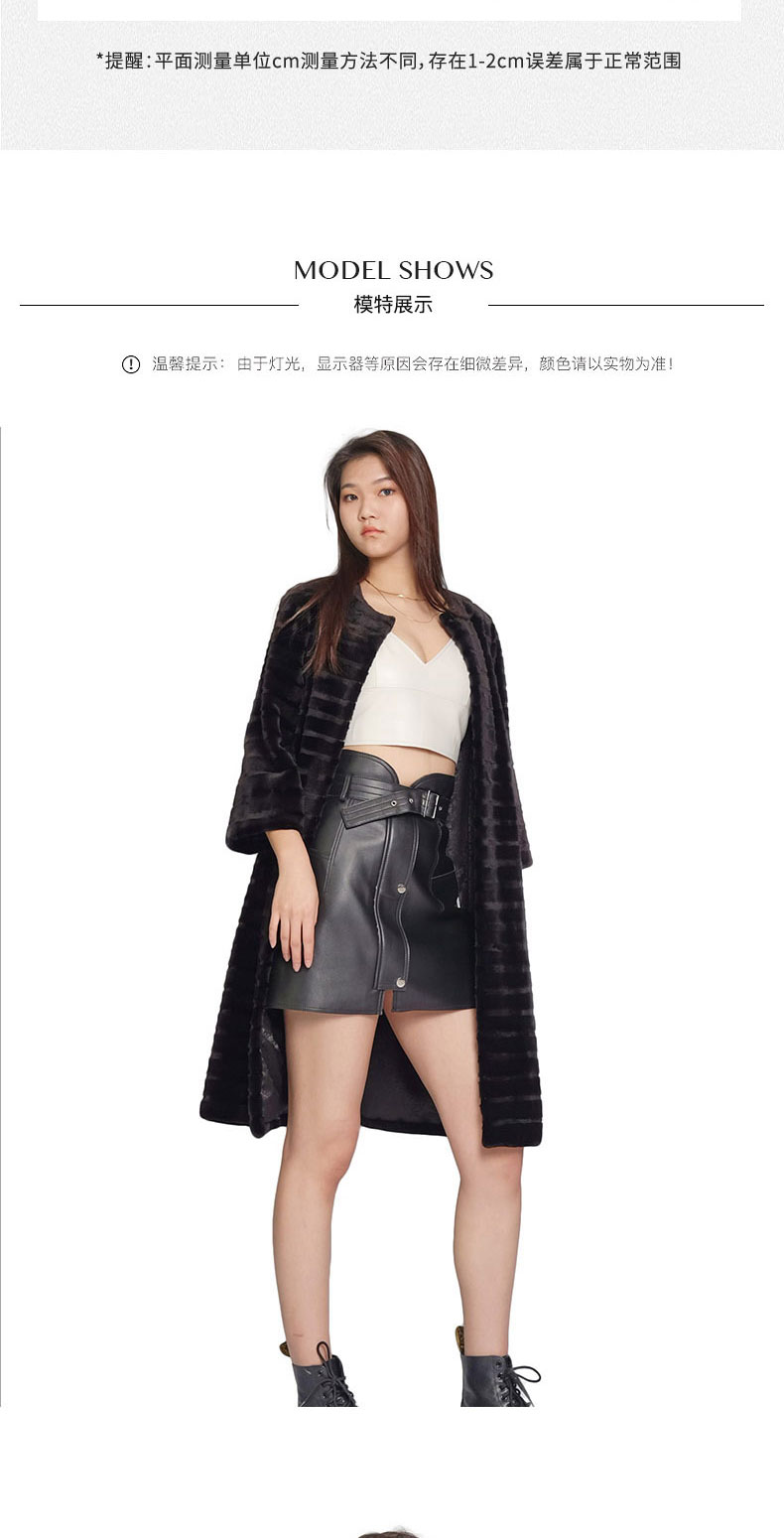 SIM GRACE 优雅夫人 女士经典的剪毛水貂间超剪水貂设计时尚圆领水貂中长款黑色冬季外套
