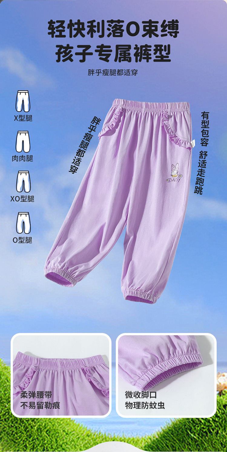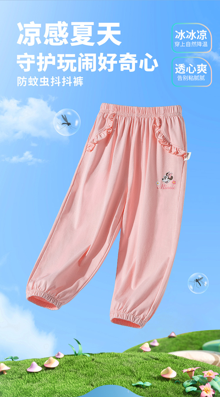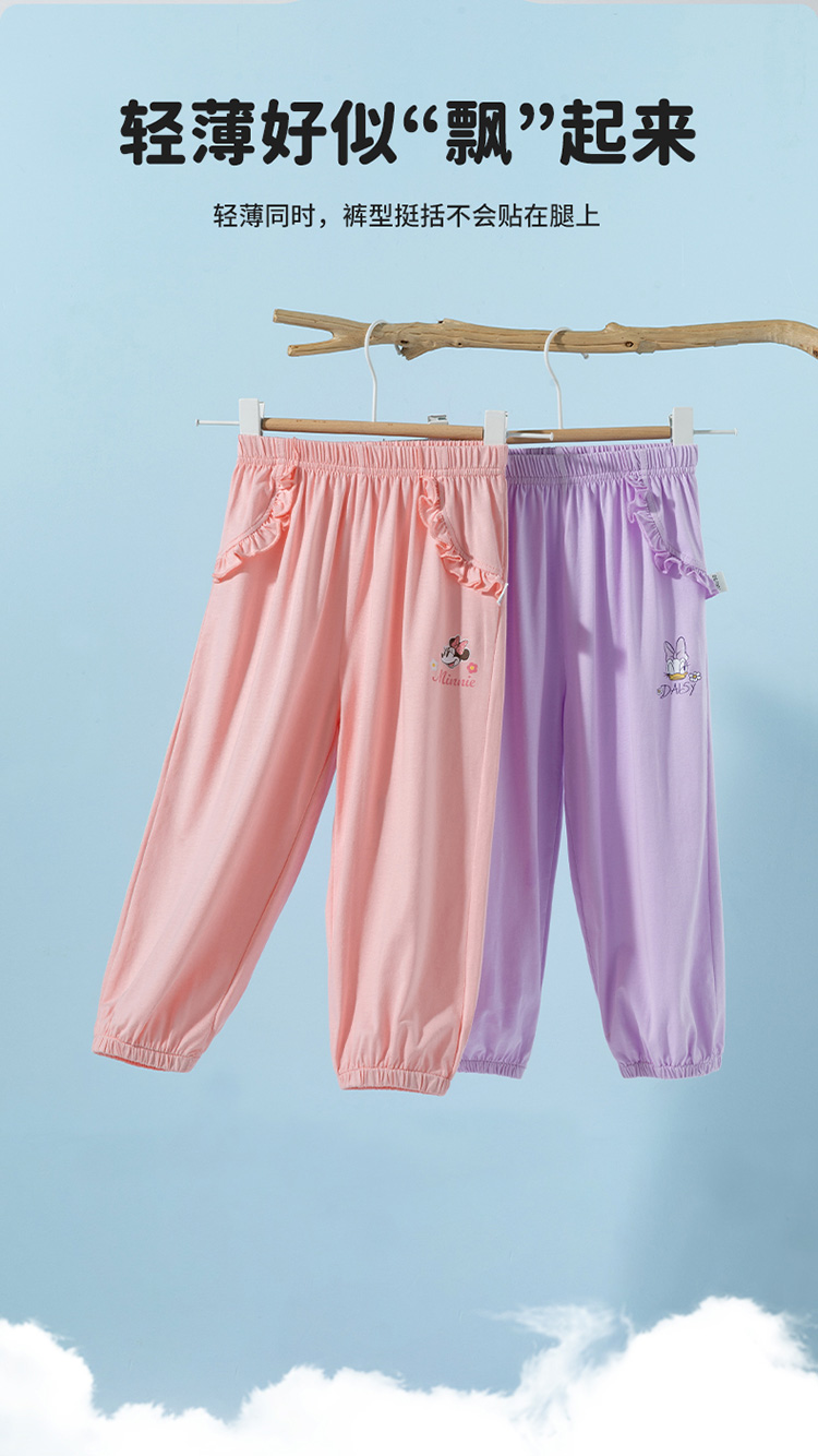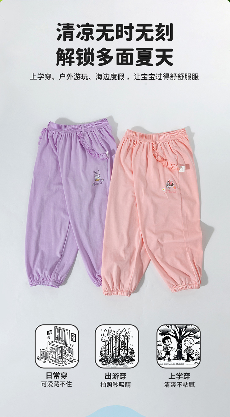 【花边口袋休闲裤】迪士尼2025春夏新款女童凉感长裤宽松透气防蚊抖抖裤ZD2EK005