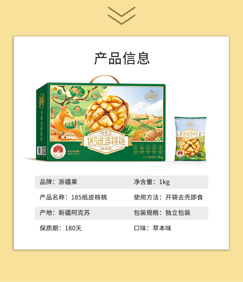 【浙疆果 阿克苏185纸皮核桃】核桃中的”爱马仕“ 一捏”爆肉“ 中国地理标识认证核桃 1KG/箱