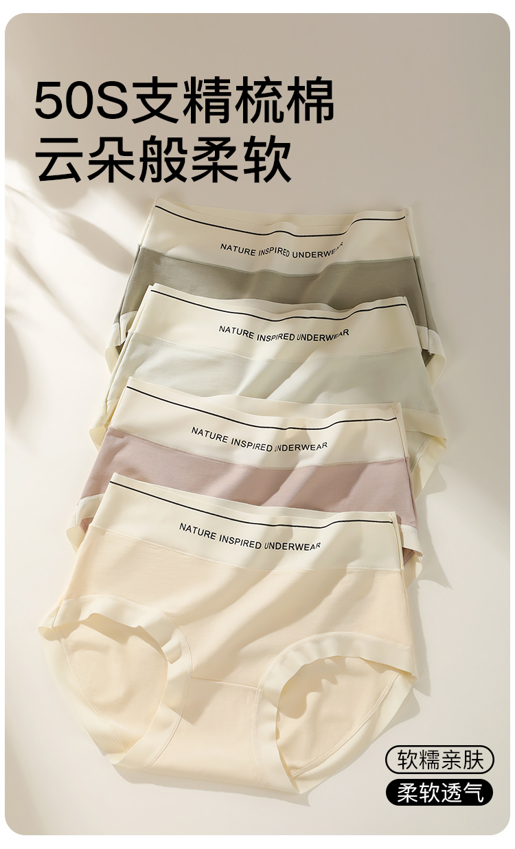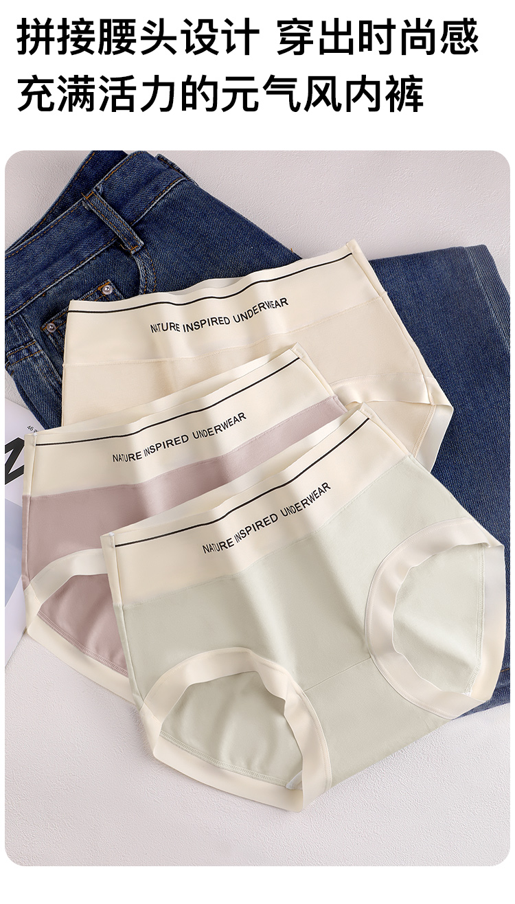 N2-【50支精梳棉】3条装冰丝裸感 凉感透气轻薄舒适无痕三角内裤中腰女士内裤女 星轨织梦