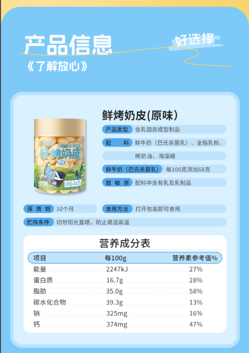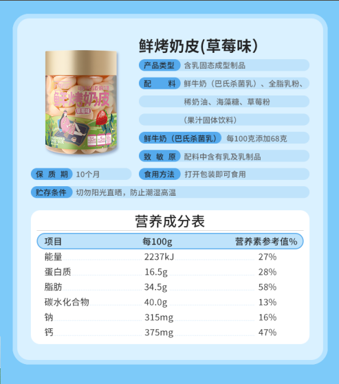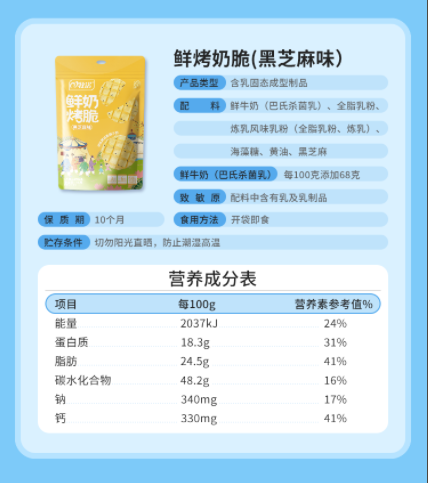 【品名】牧诺 鲜烤奶脆/鲜烤奶皮 高钙高蛋白 营养美味 6袋装/4瓶装 【规格】 鲜烤奶脆36g/袋:原味、黑芝麻味 鲜烤奶皮80g/瓶:原味、草莓味 【产地】国内 【保质期】10个月 【发货包装】独立包装 【发货地】内蒙古 【发货快递】中通、圆通、申通、韵达随机发 【不发货区域】新疆、西藏、青海、港澳台 【补邮费地区】海南+5元/单 【发货时效】48-72小时,周末节假日顺延 |