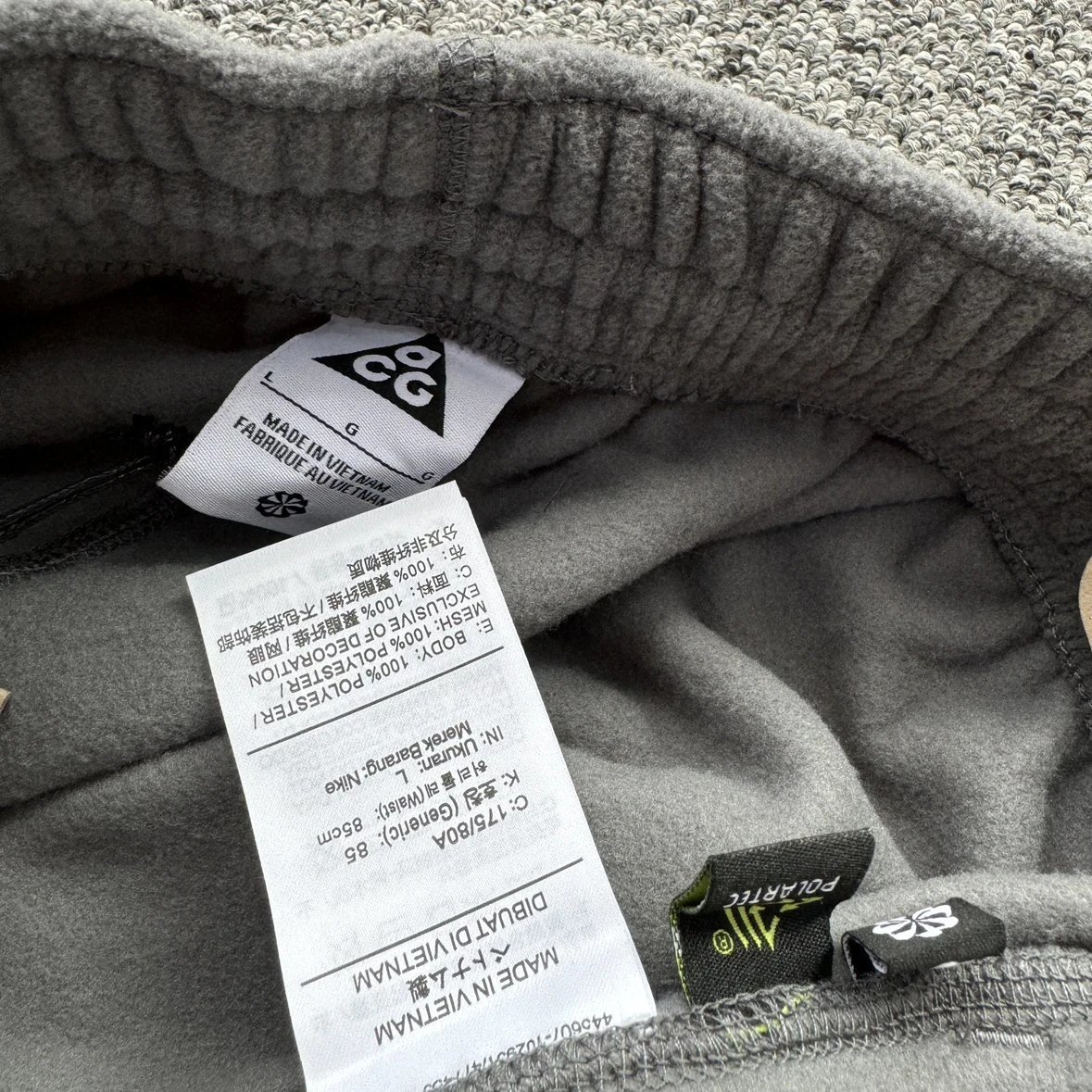双面摇粒绒材质厚度中等不会臃肿也不会闷三角刺绣和裤脚处的 Pola刺绣 Logo 包括口袋裤脚包边织带都是定织定染对色对版辅料齐全 #