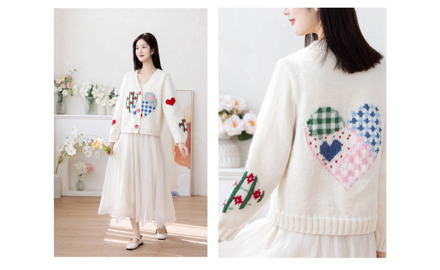 苏苏姐家星悠V领开衫手工DIY编织粗羊毛线棒针毛线团衣服材料包