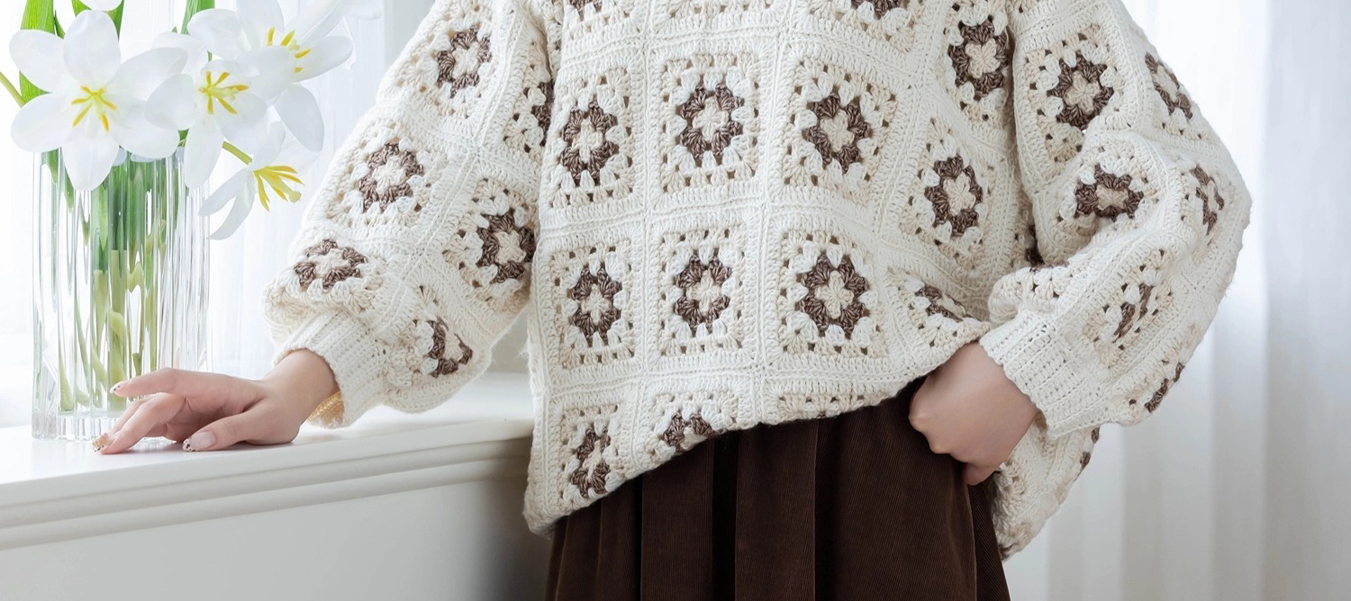 苏苏姐家奶油祖母格套头衫手工diy编织钩针毛线团自制毛衣材料包
