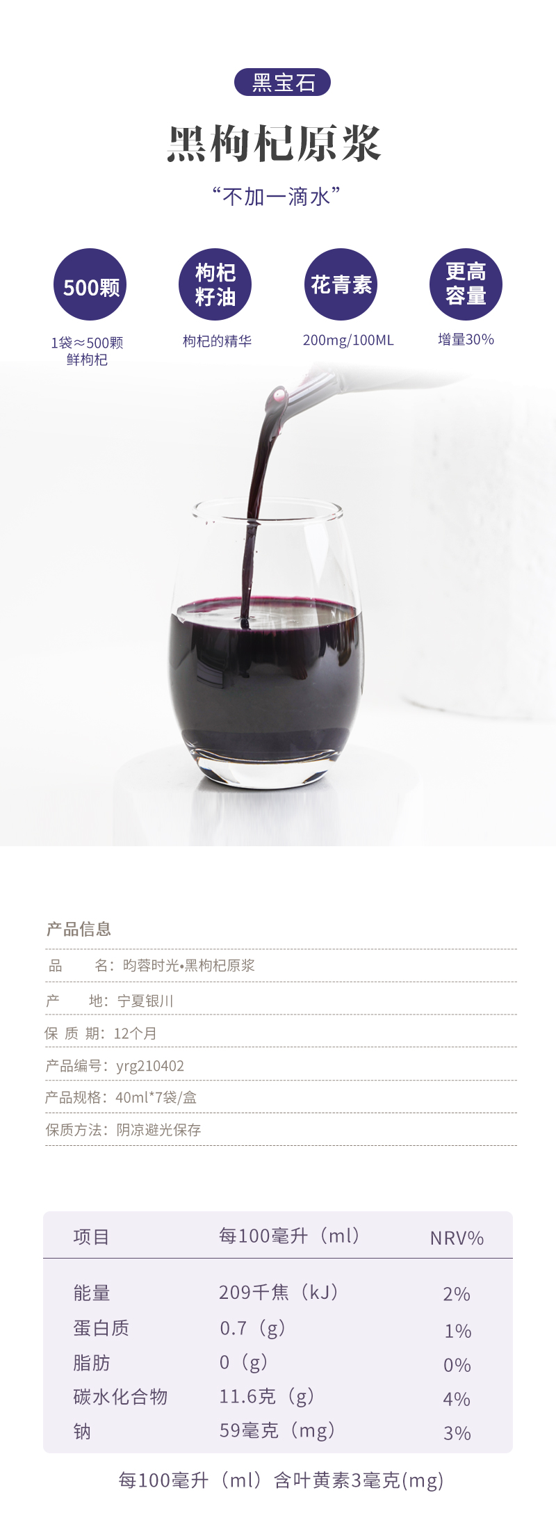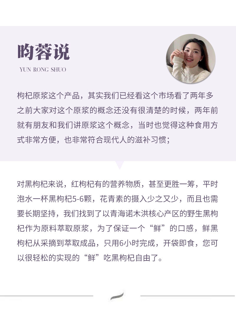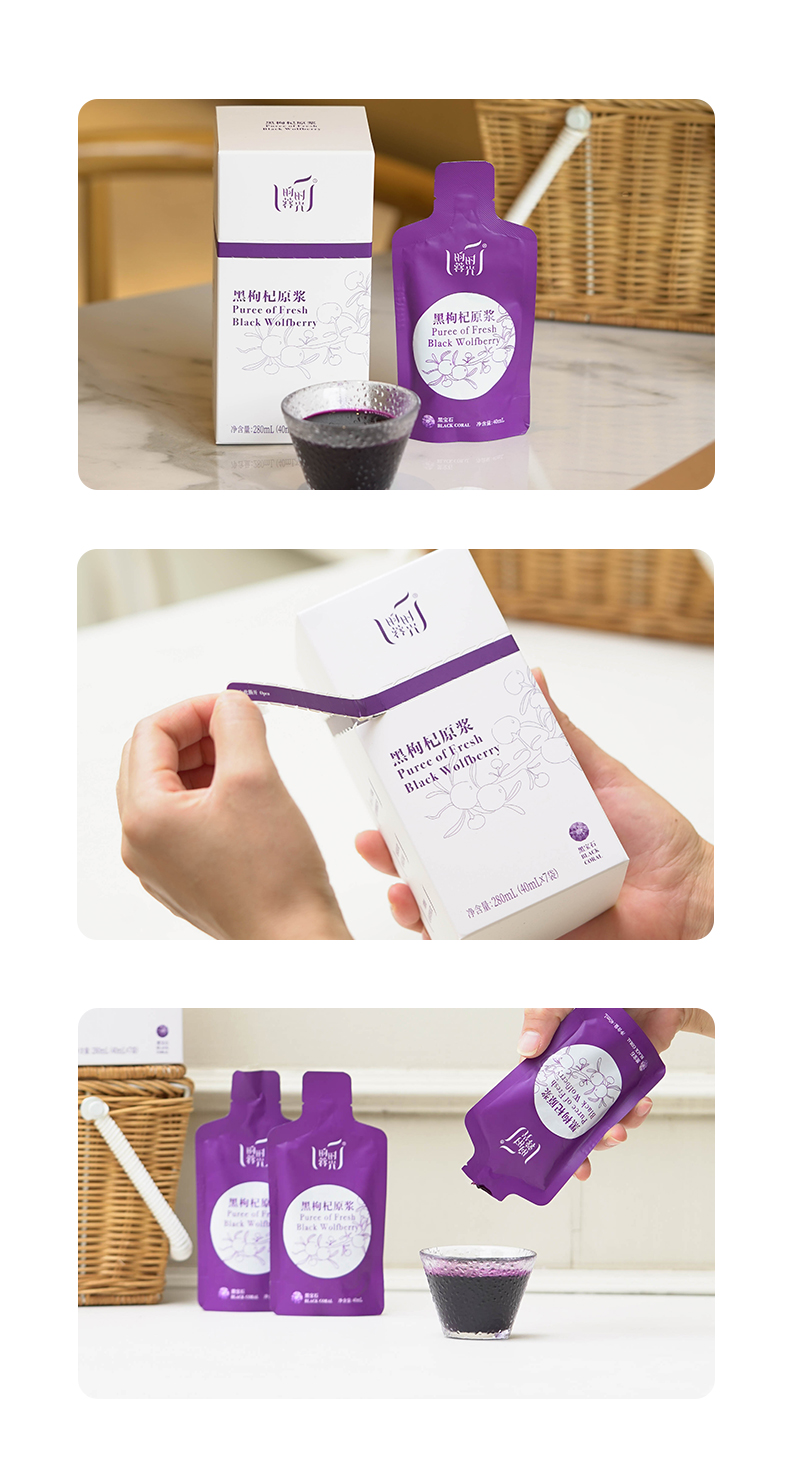 【昀蓉时光 · 单盒 · 黑枸杞原浆】多国认证720项0农残检测 · 拒绝添加 ·(每天来一袋,日日精进对自己可以更好一点)( 40ml*7袋/盒)