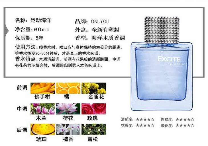【香水】品牌自由男士香水 古龙魅力诱惑香水90ml 持久淡香清新