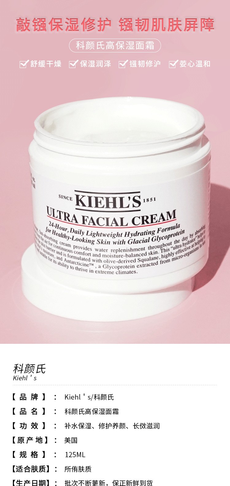 【女神狂欢嗨购】【香港直邮】科颜氏面霜新款高保湿125ml(秒杀)