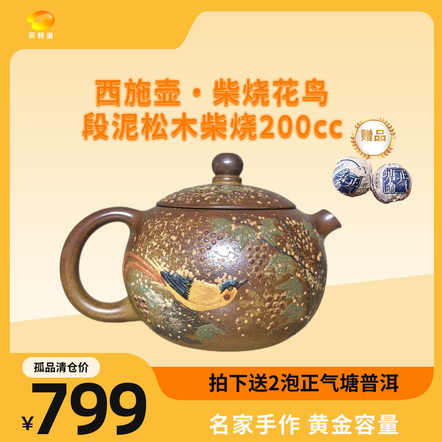 🔹西施壶・柴烧花鸟 段泥松木柴烧 200cc