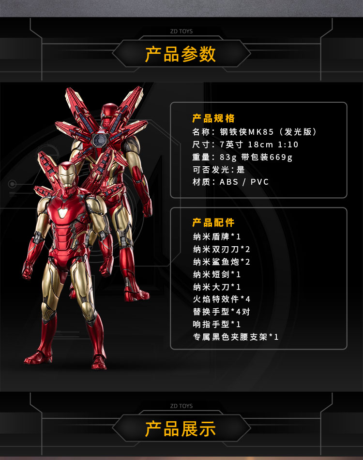 中动玩具 漫威 钢铁侠 MK85 v2.0 发光可动 手办模型