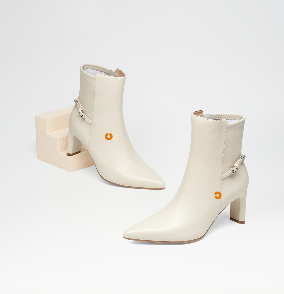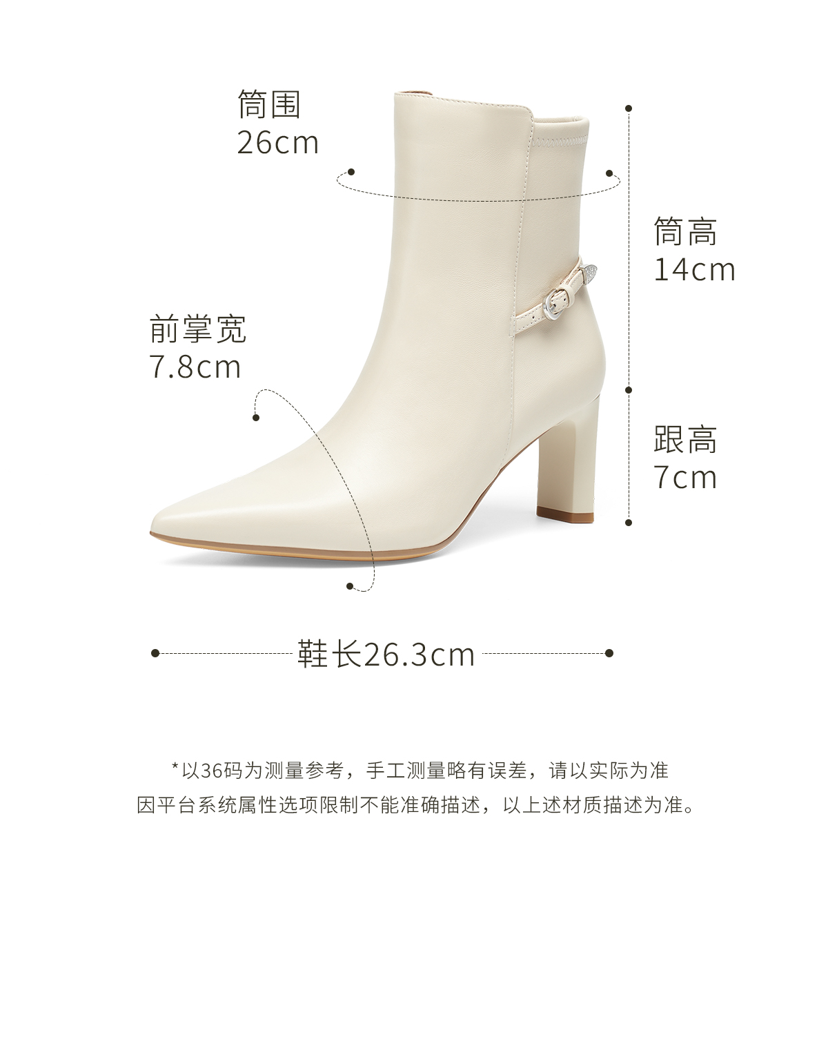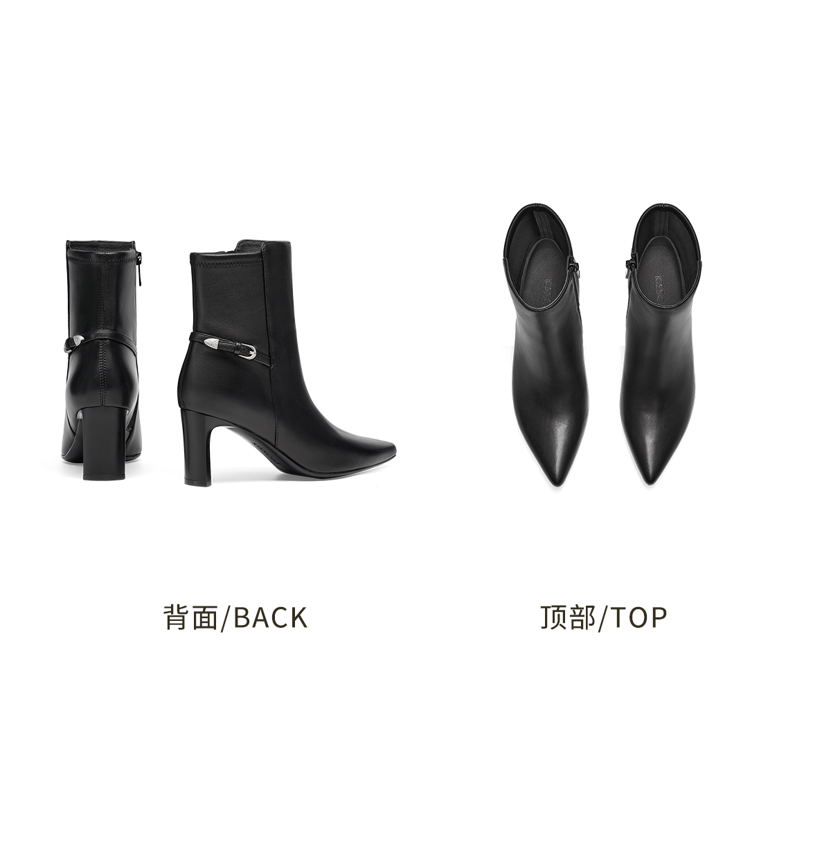 【云粉节】BF楼KISSCAT接吻猫25冬新款优雅尖头高跟靴粗跟法式真皮白色短靴女KA65714-11吊牌价1599活动价899