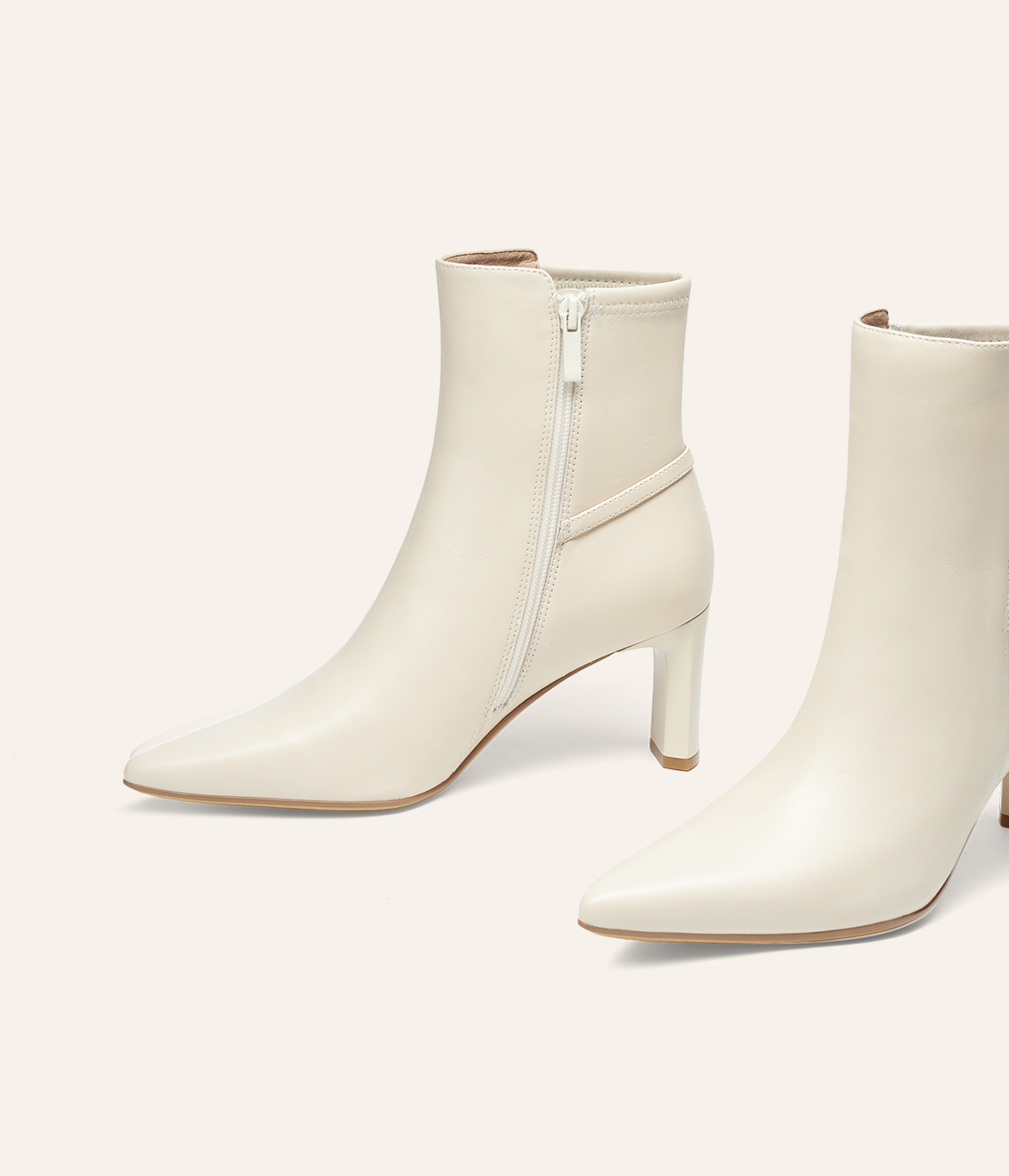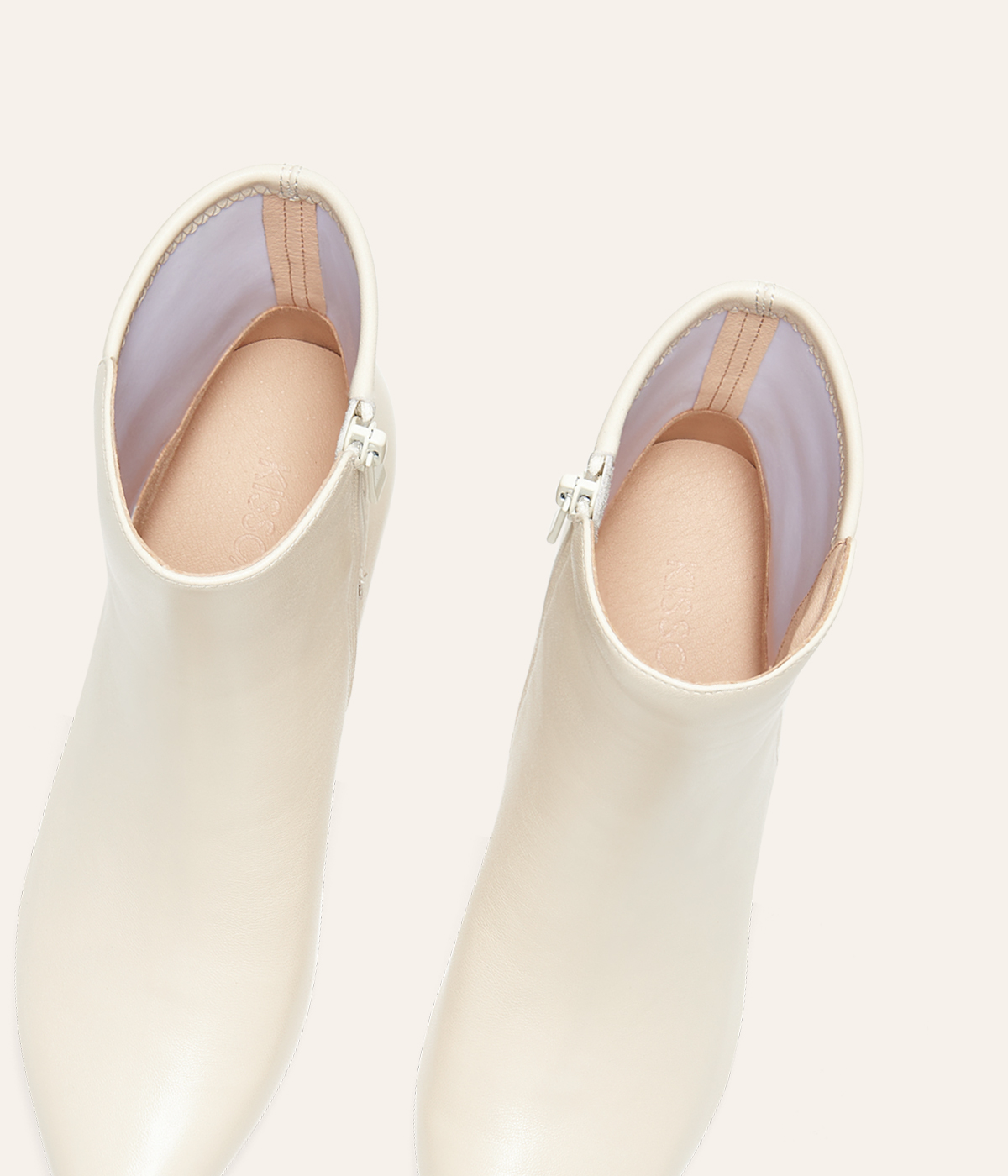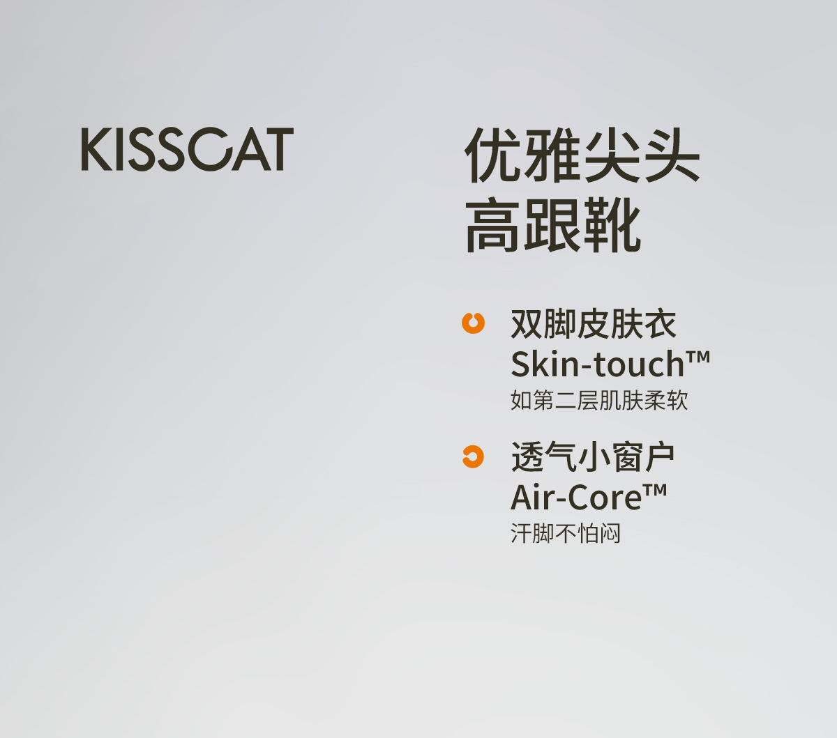 【云粉节】BF楼KISSCAT接吻猫25冬新款优雅尖头高跟靴粗跟法式真皮白色短靴女KA65714-11吊牌价1599活动价899
