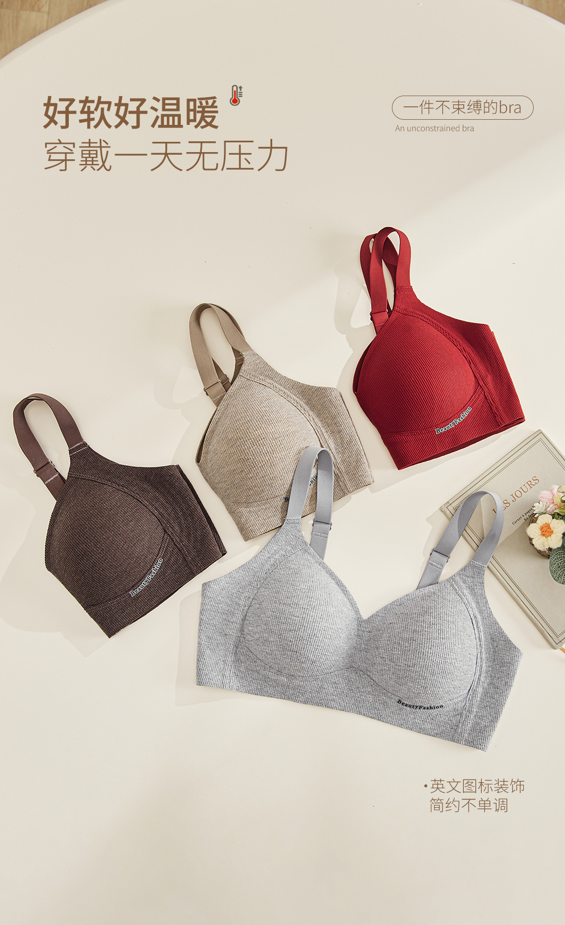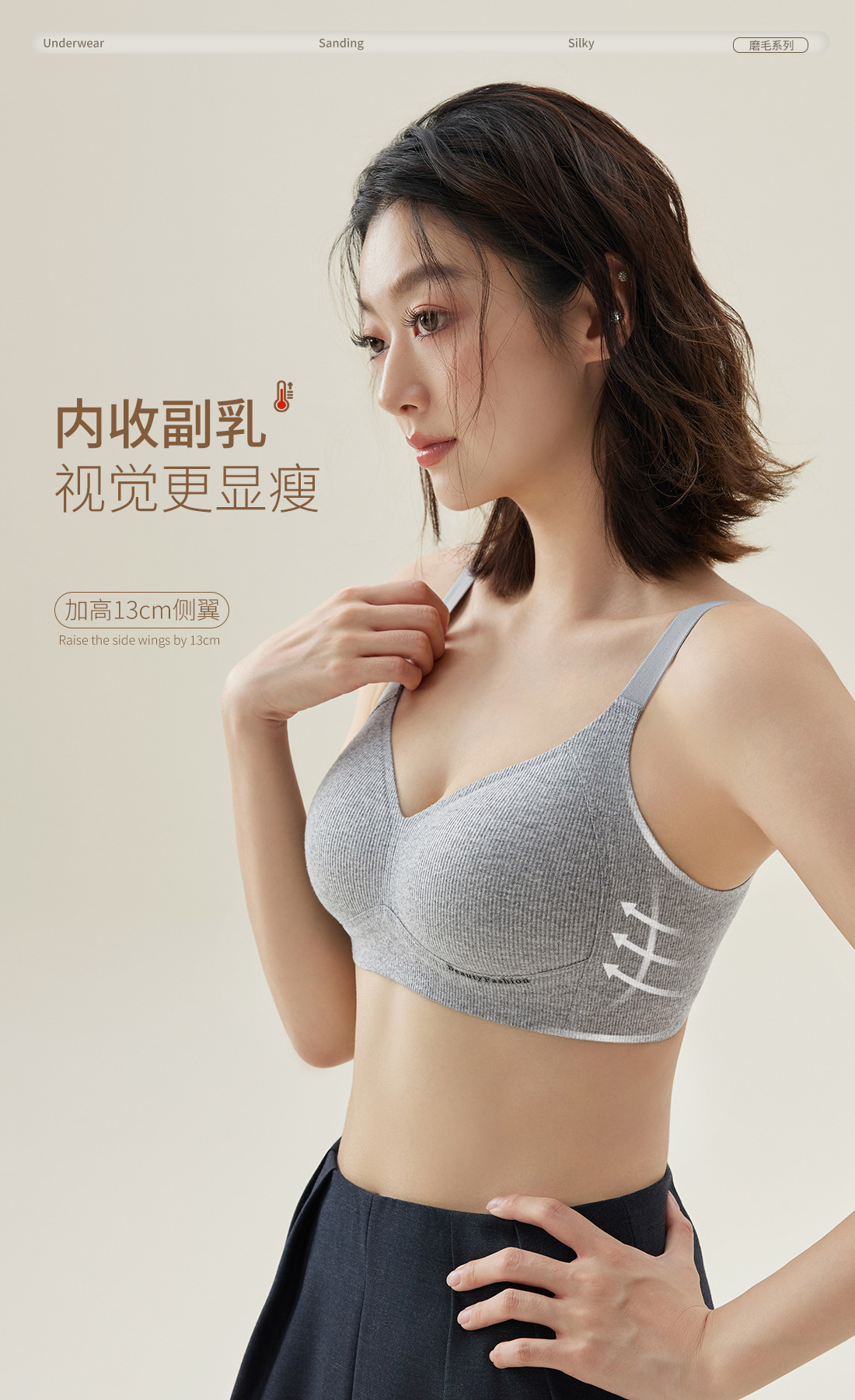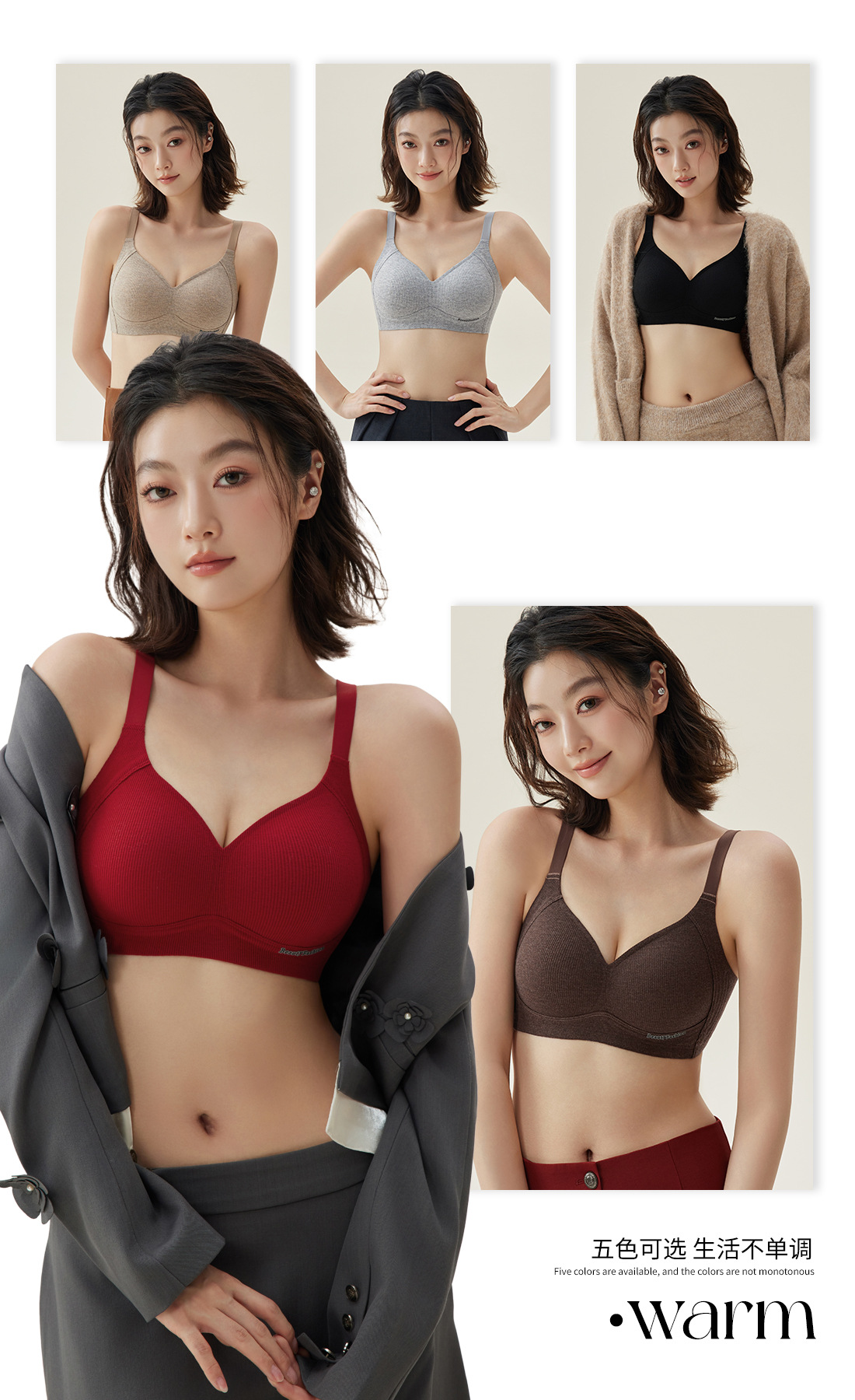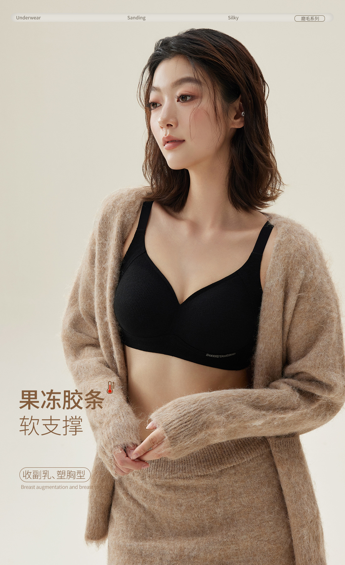 【MIVECION磨毛果冻条内衣】 精选高弹罗纹暖肤面料 贴身不紧绷 果冻胶软支撑 肩带0压力 舒适提拉包裹聚拢无痕 3D透气棉杯 稳托不跑杯