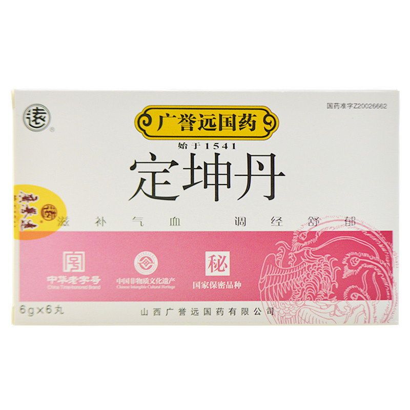 正品包邮】广誉远 定坤丹 6g*6丸/盒滋补气血调经舒郁 用于月经不调经行腹痛崩漏下血赤白带下贫血衰弱血晕血脱产后诸虚骨蒸潮热