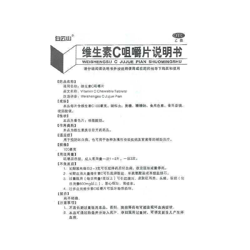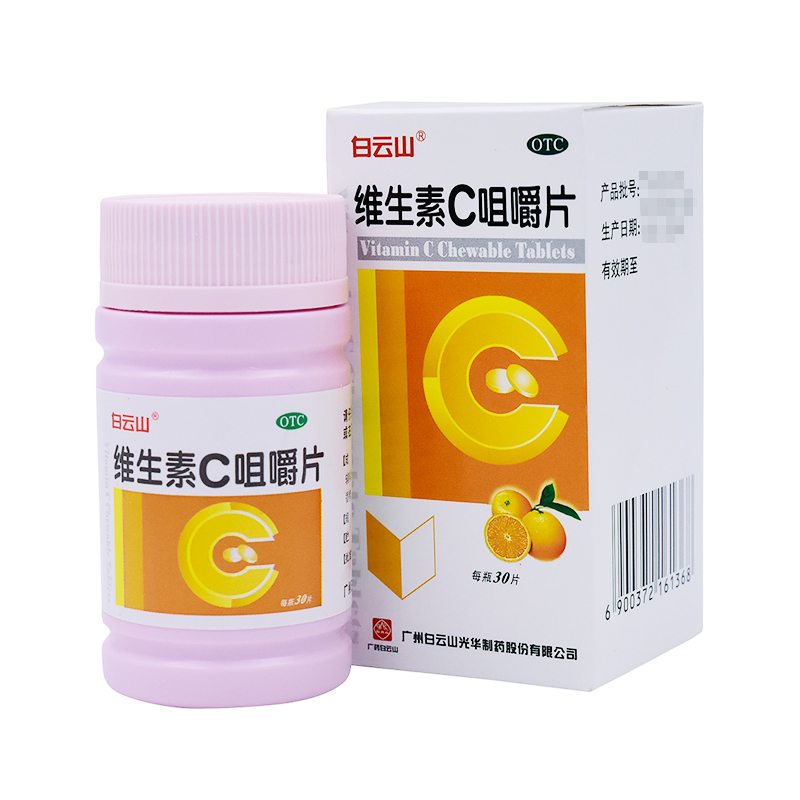 白云山 维生素C咀嚼片30片预防坏血病辅助治疗传染病紫癜香橙味vc