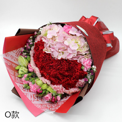 F款:18朵红康乃馨+18朵粉康乃馨+1朵粉绣球花+桔梗