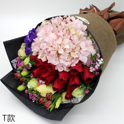 T款:11朵红玫瑰+1朵粉色绣球花+桔梗+石竹梅
