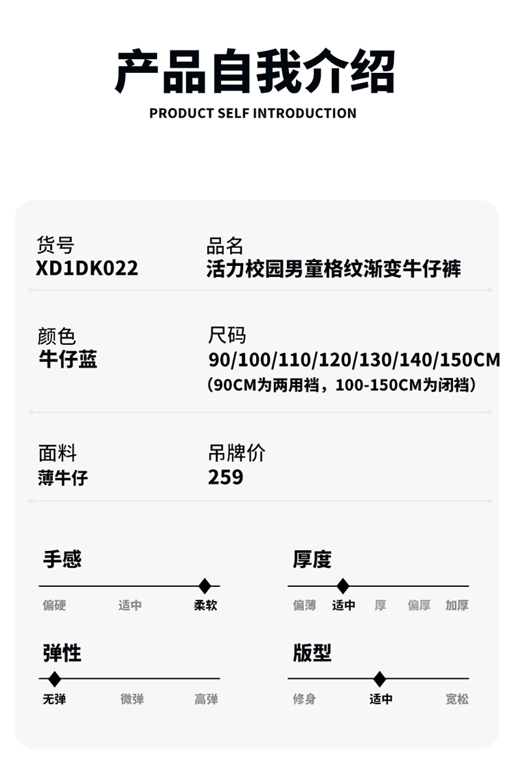 【商场同款】Disney/迪士尼格子渐变牛仔长裤XD1DK022