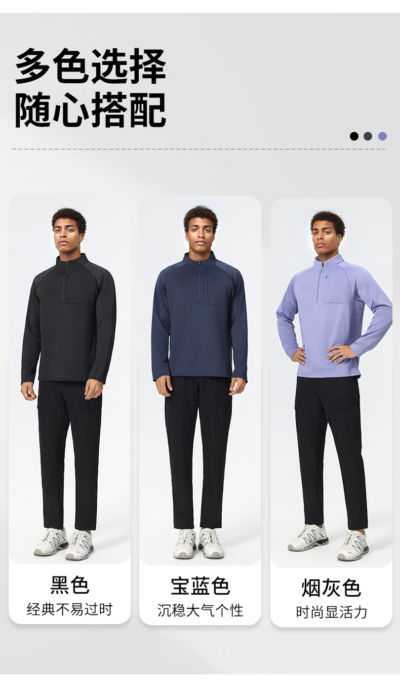 跃牌【PF系列】健身T恤长袖速干跑步训练服半拉链修身套头立领运动卫衣61188W
