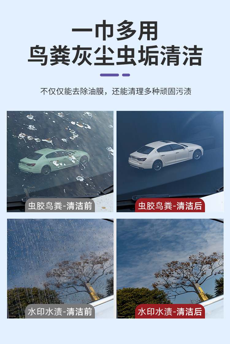 【一擦玻璃透亮】汽车玻璃去油膜清洁湿巾 皮革内饰翻新 塑料保养 除油膜湿纸巾 15抽/包