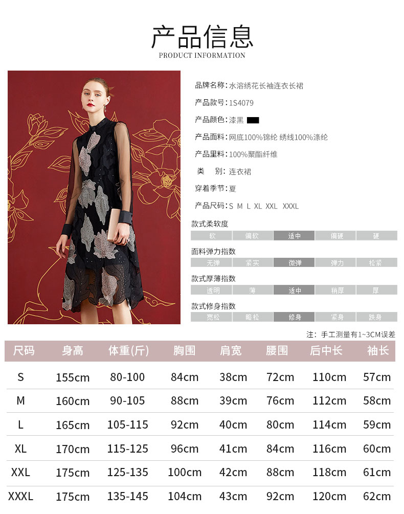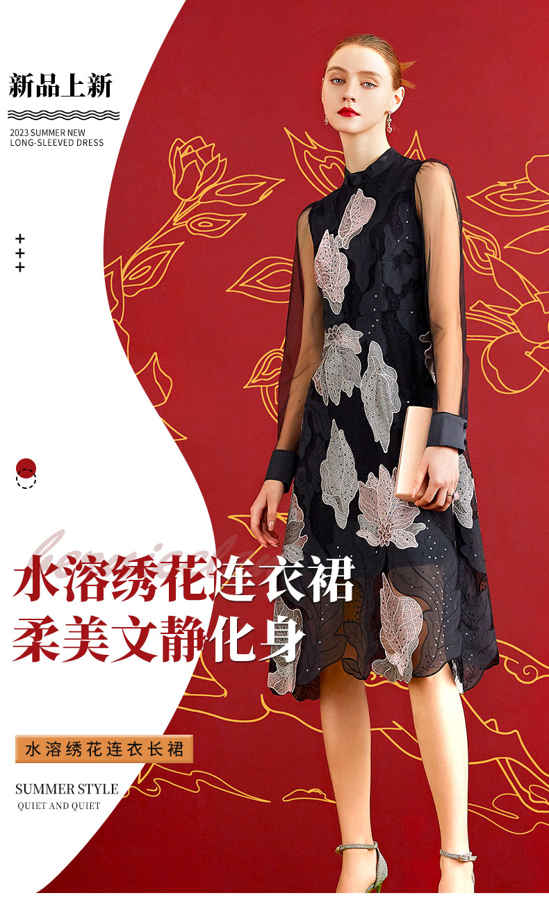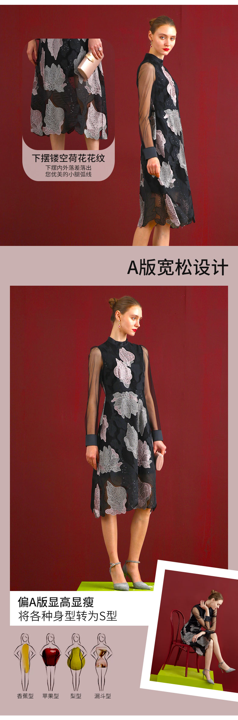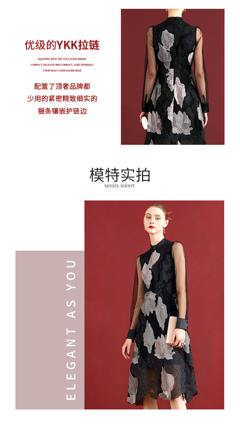 9C-【伯妮斯茵】高贵气质刺绣荷花立领连衣裙 1S4079