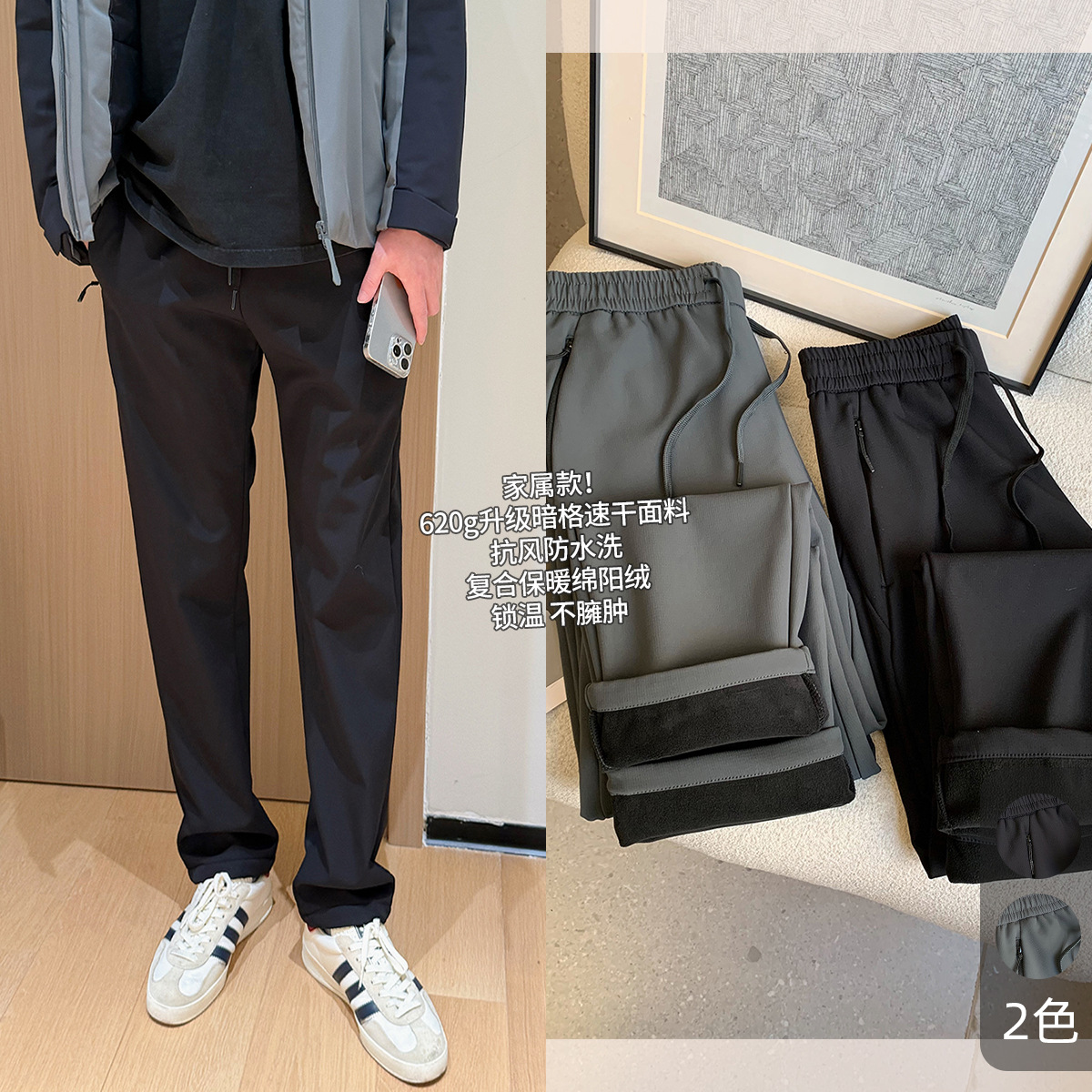 620G升级暗格速干面料复合绵阳绒松紧腰休闲运动裤!