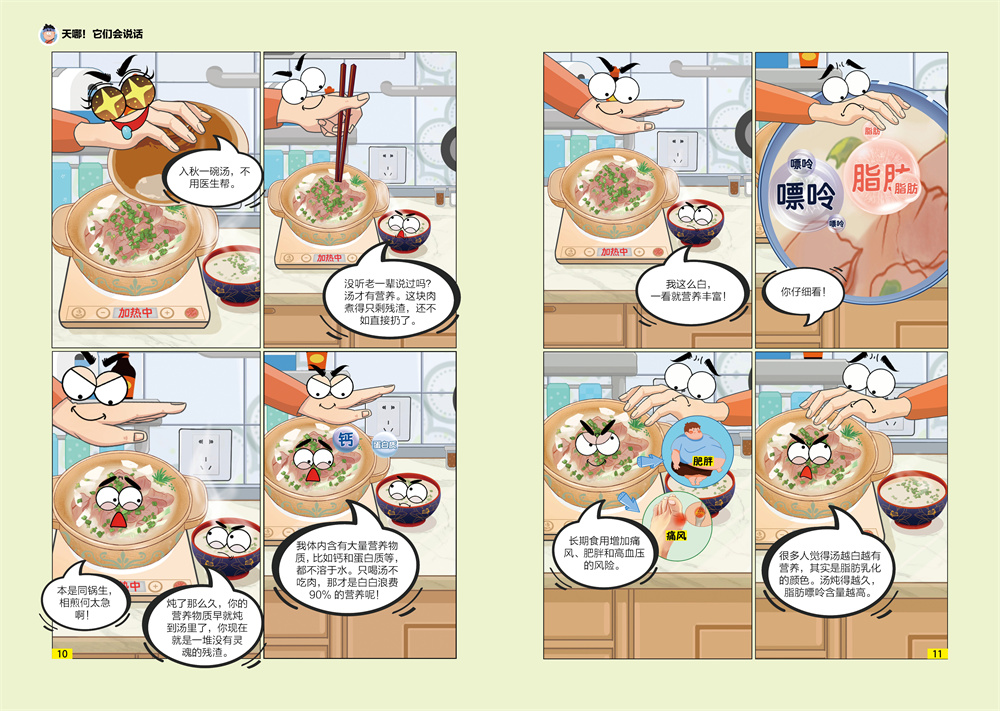 《天哪!它们会说话》是一套专为全年龄段读者打造的趣味科普漫画书,打破传统科普的枯燥说教,以;万物皆有灵,万物皆能言为核心,让我们身边那些看似沉默的动物、植物、食物甚至日常物品,都开口;诉说自己不为人知的秘密。这套书涵盖生物、自然、饮食、健康、生活常识等多个领域,汇集了200十个颠覆认知的趣味冷知识,从蜜蜂酿造蜂蜜的真实过程、考拉动作迟缓的背后原因,到菠菜焯水的科学原理、西瓜中间最甜的秘密,再到海龟性别由温度决定、猪笼草捕食昆虫的奥秘,每一个知识点都以幽默诙谐的卡通对话、生动鲜活的全彩漫画呈现,将严谨复杂的科学原理拆解成通俗易懂的小故事,没有晦涩的专业术语,只有接地气的讲解和让人忍俊不禁的情节。无论是充满好奇心的孩子,还是想拓宽知识面、解锁生活小技巧的成年人,都能在阅读中收获惊喜与知识,既能满足探索欲,又能培养科学思维和观察力,让读者在轻松愉悦的氛围中发现世界的奇妙,明白身边的一草一木、一饭一菜都藏着不为人知的科学密码,真正做到寓教于乐,越读越上瘾,翻开就停不下来。